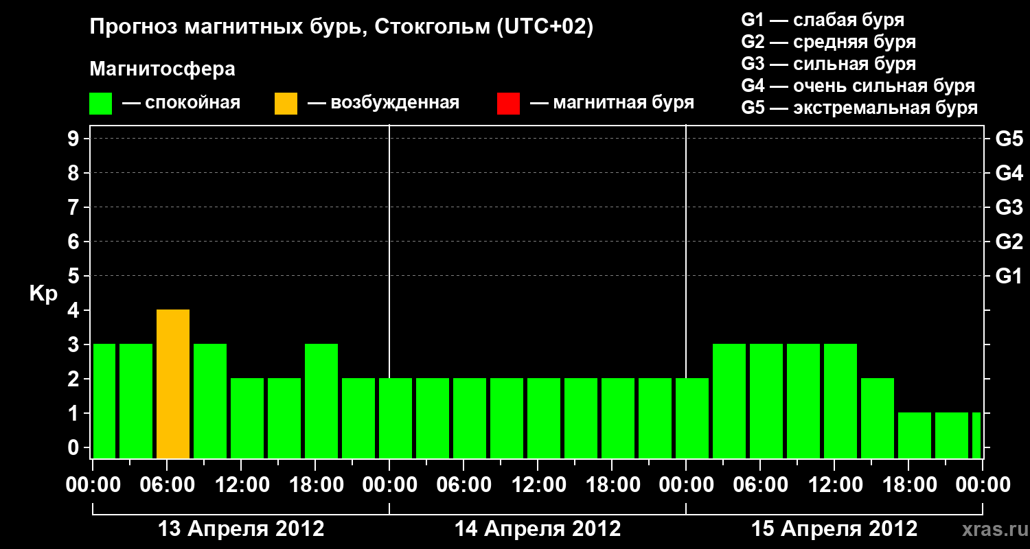 Прогноз магнитных бурь в Стокгольме — 13 апреля 2012 года