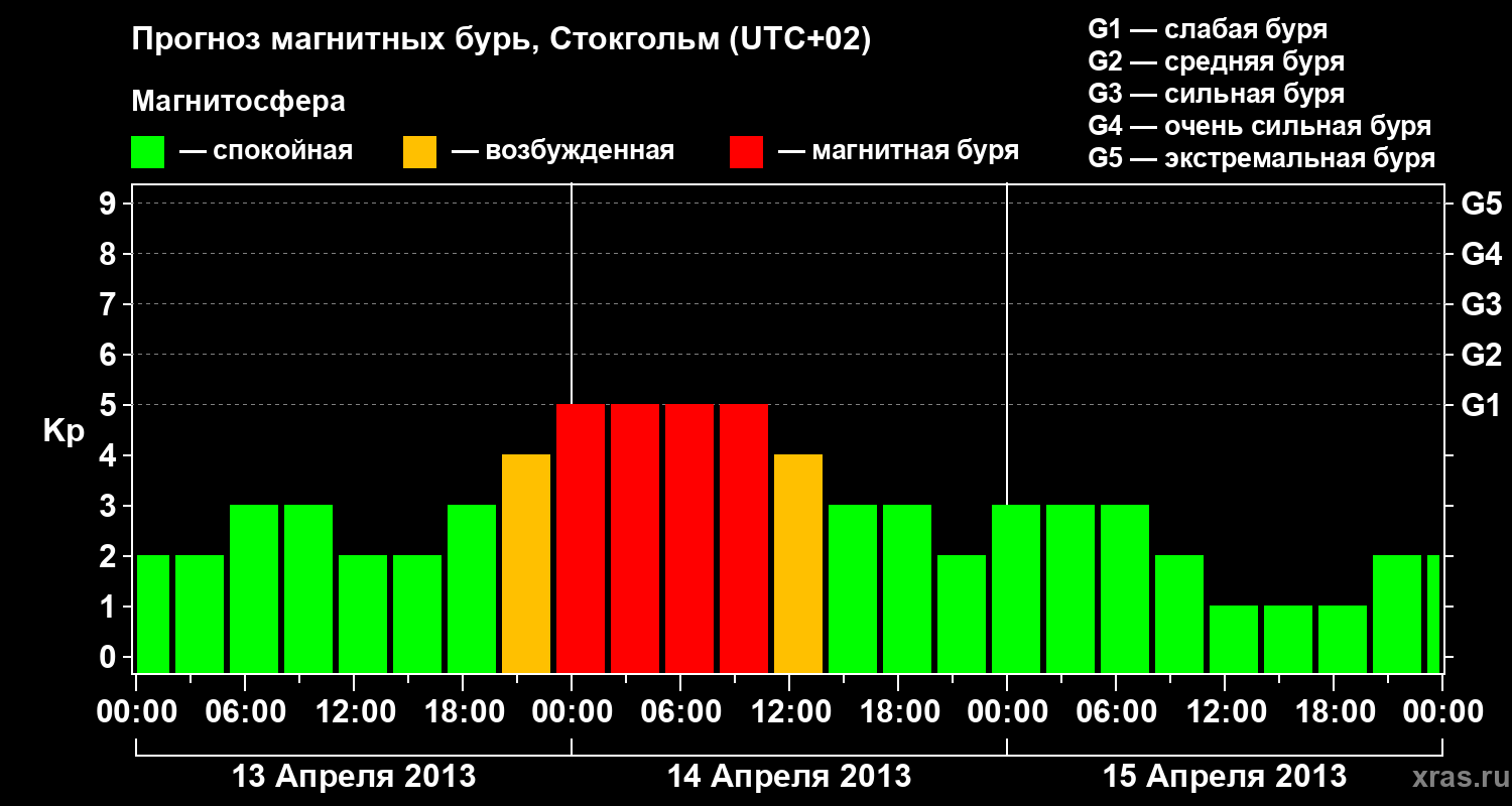 Прогноз магнитных бурь в Стокгольме — 13 апреля 2013 года