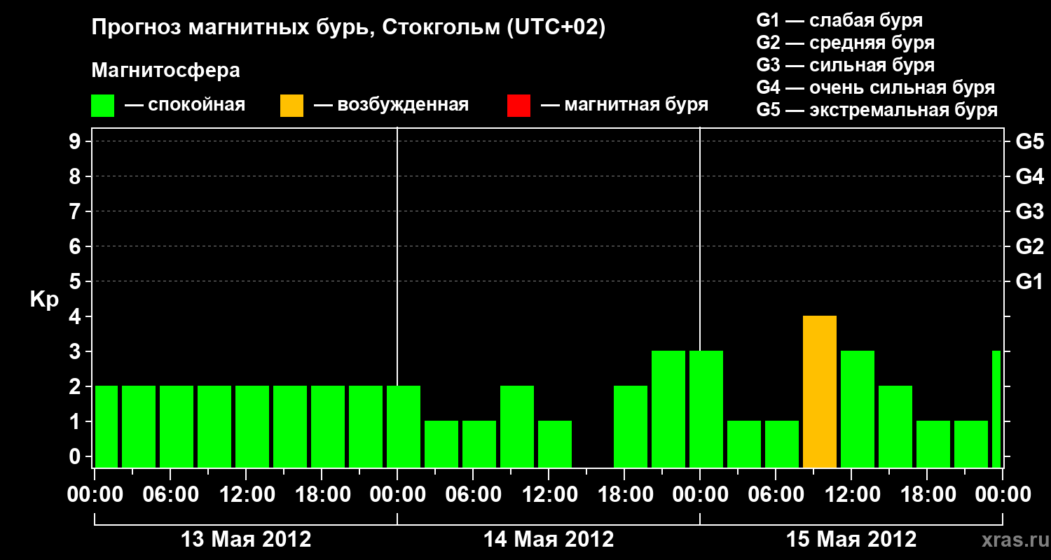 Прогноз магнитных бурь в Стокгольме — 13 мая 2012 года