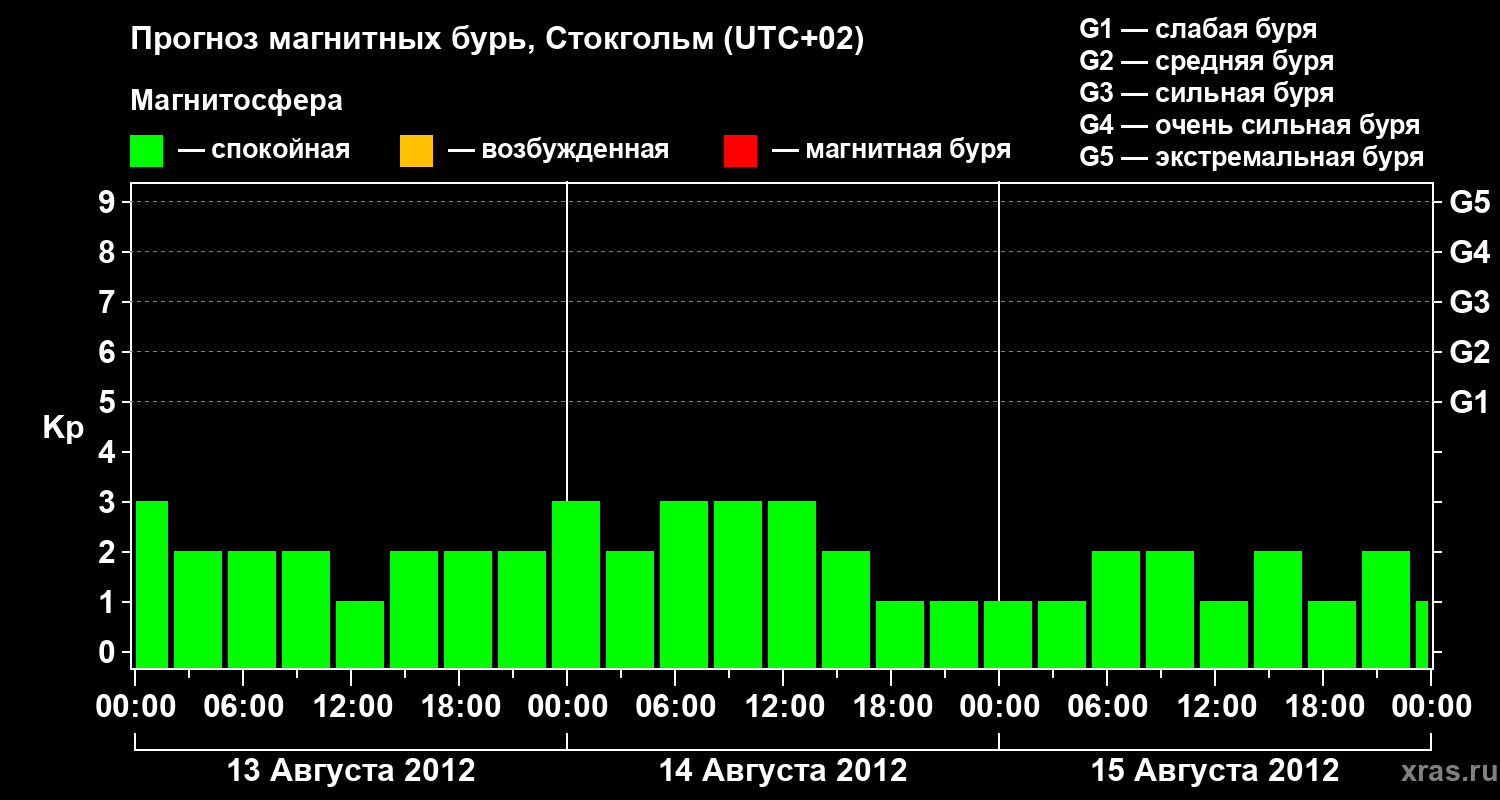 Прогноз магнитных бурь в Стокгольме — 13 августа 2012 года