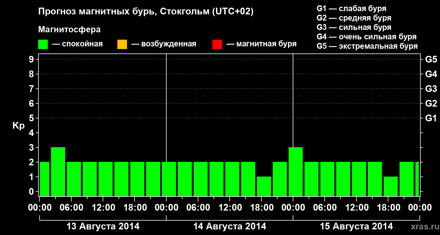 Прогноз магнитных бурь в Стокгольме — 13 августа 2014 года