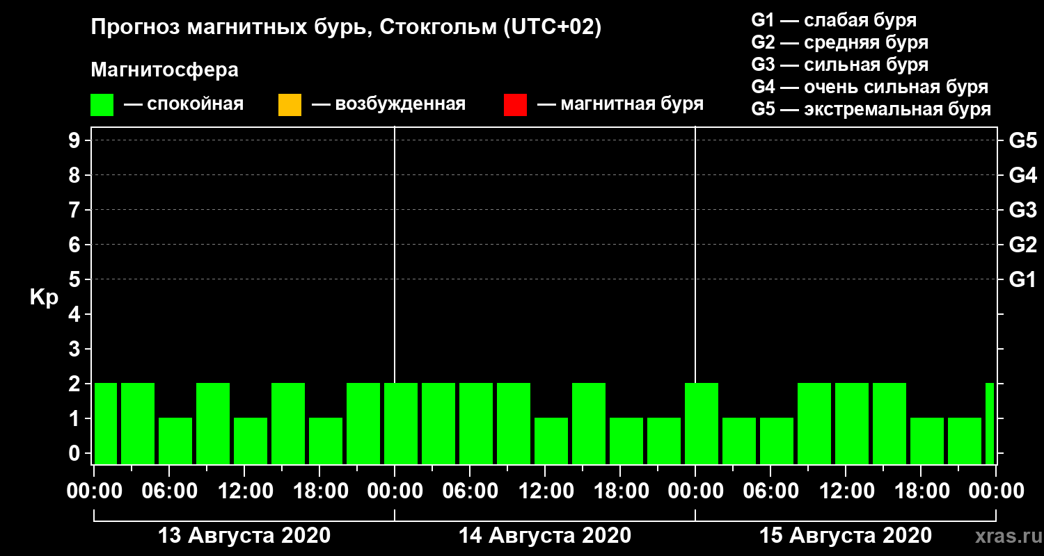 Прогноз магнитных бурь в Стокгольме — 13 августа 2020 года