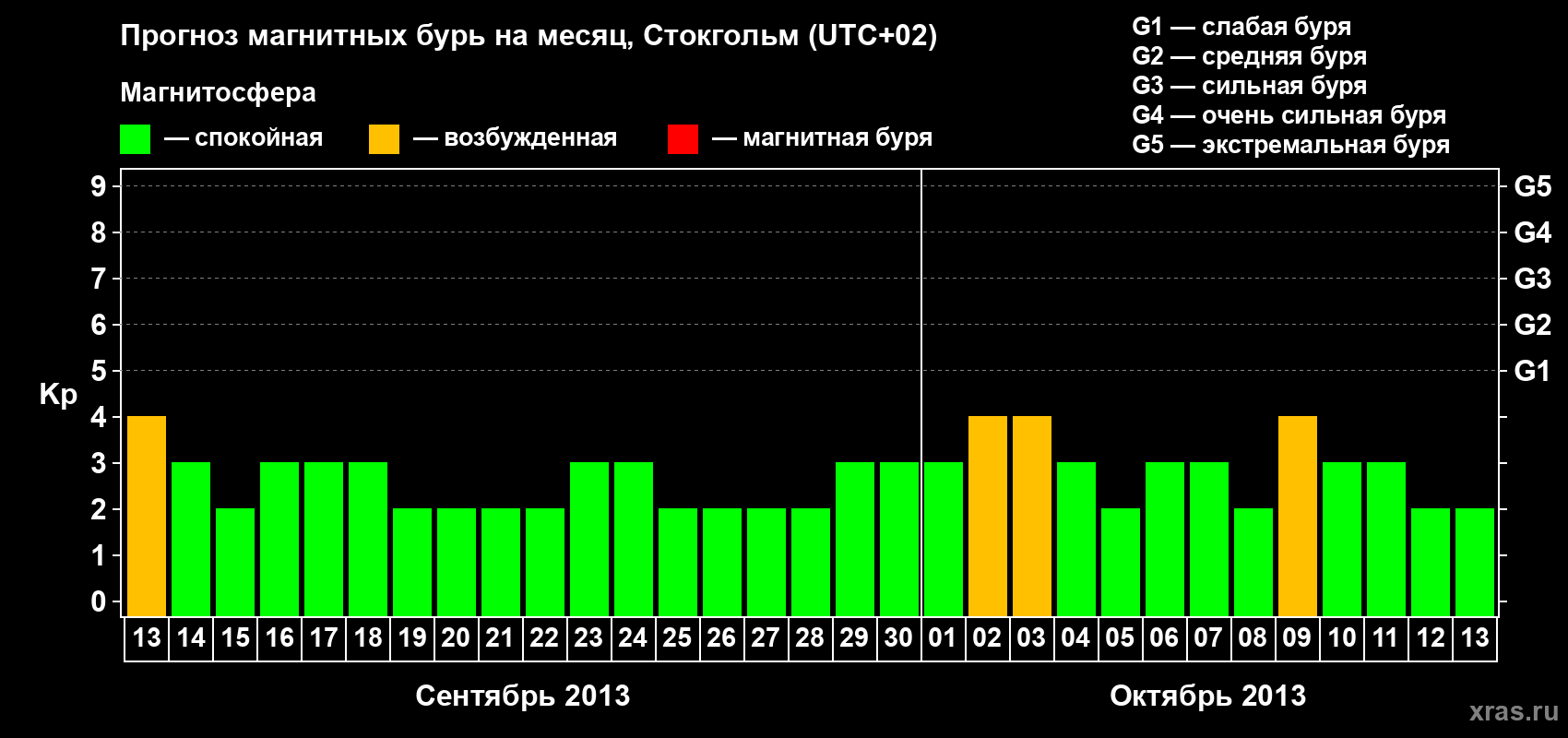 Прогноз магнитных бурь в Стокгольме — 13 сентября 2013 года