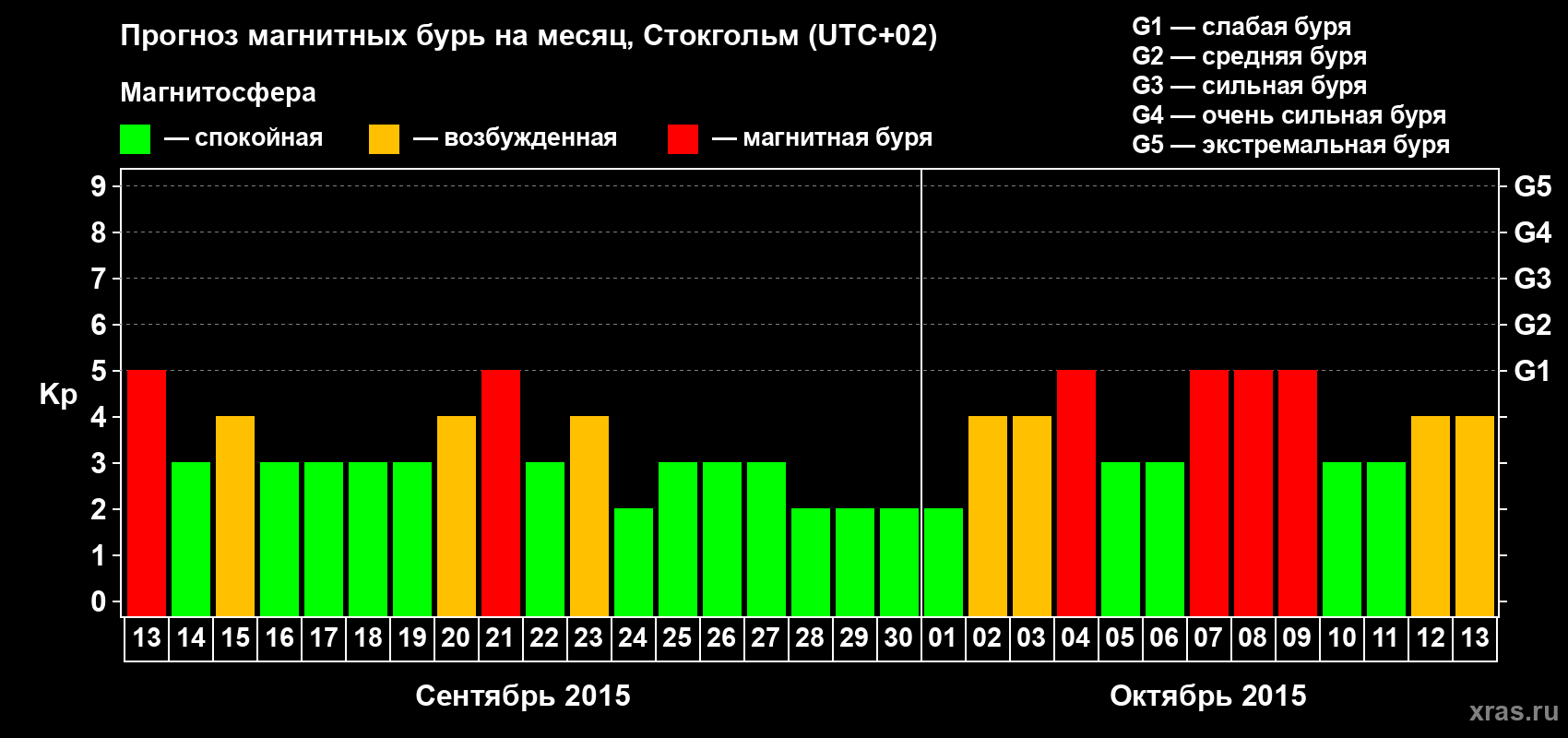 Прогноз магнитных бурь в Стокгольме — 13 сентября 2015 года