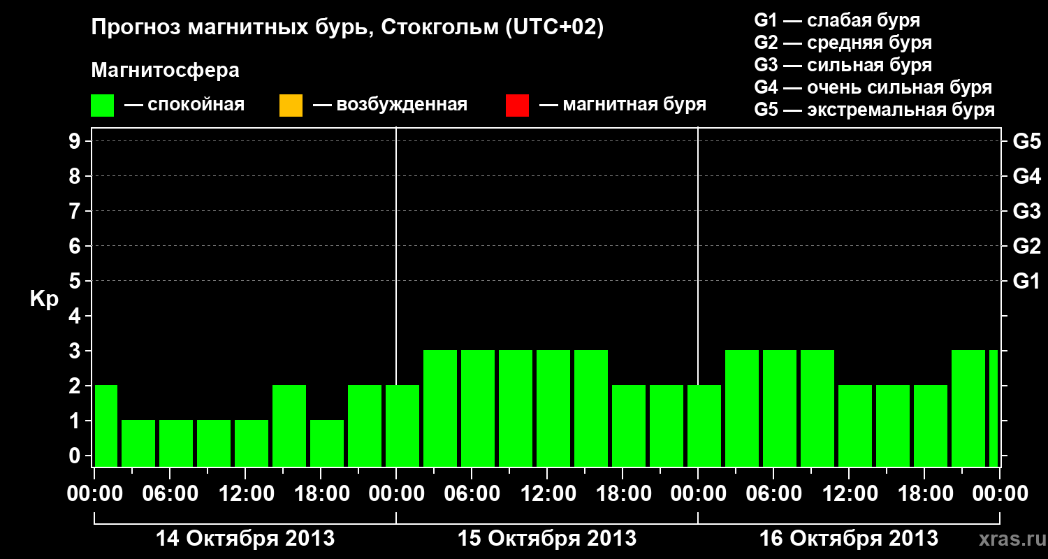 Прогноз магнитных бурь в Стокгольме — 14 октября 2013 года