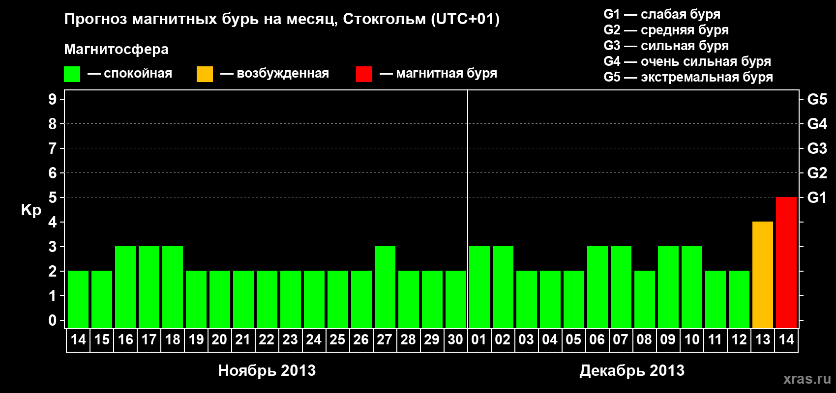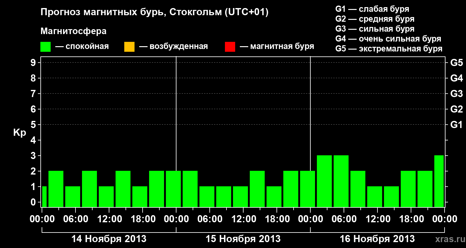 Прогноз магнитных бурь в Стокгольме — 14 ноября 2013 года