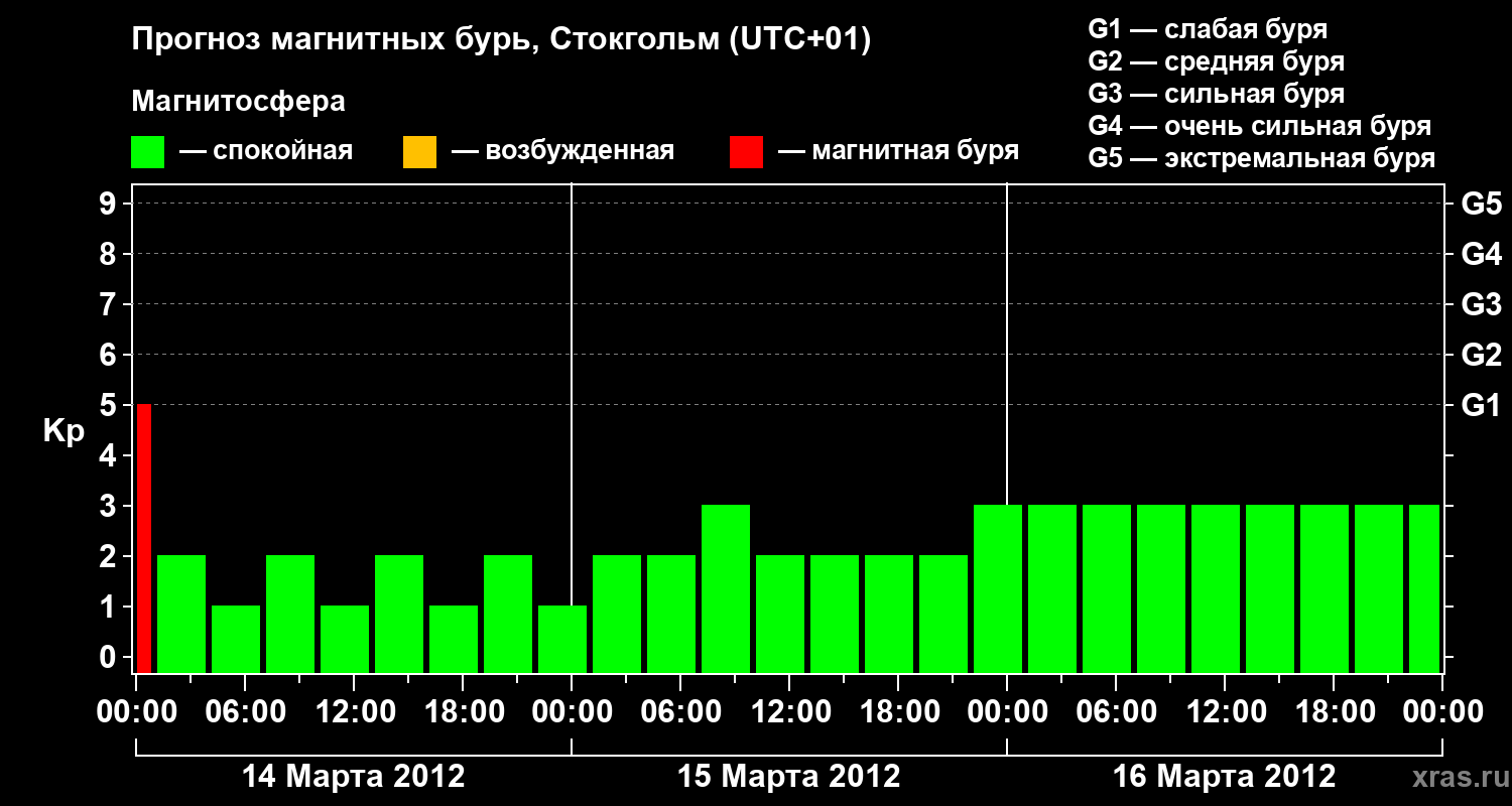 Прогноз магнитных бурь в Стокгольме — 14 марта 2012 года