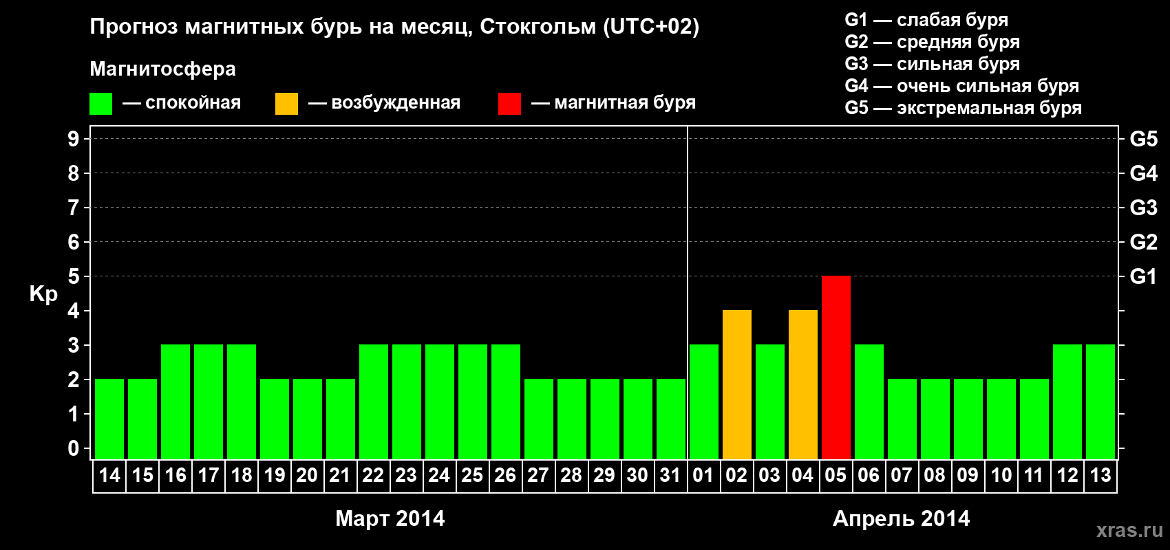 Прогноз магнитных бурь в Стокгольме — 14 марта 2014 года