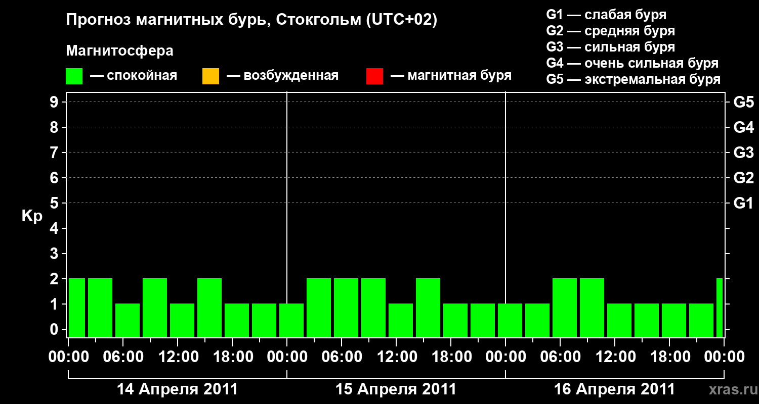 Прогноз магнитных бурь в Стокгольме — 14 апреля 2011 года