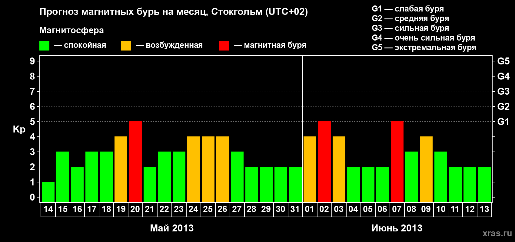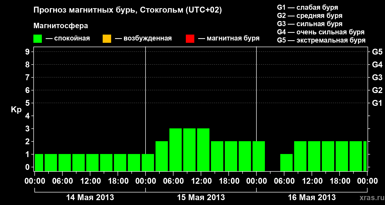 Прогноз магнитных бурь в Стокгольме — 14 мая 2013 года
