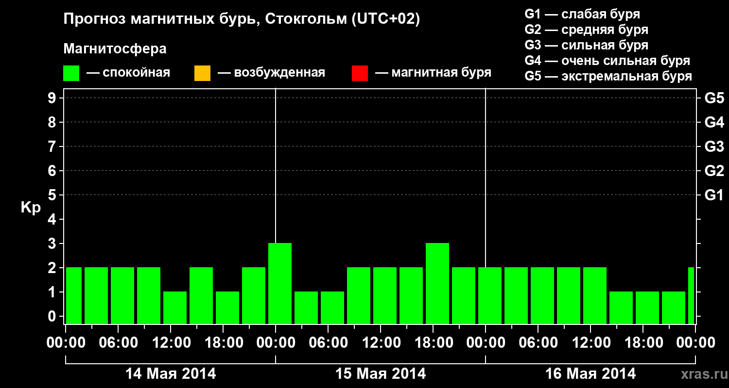 Прогноз магнитных бурь в Стокгольме — 14 мая 2014 года