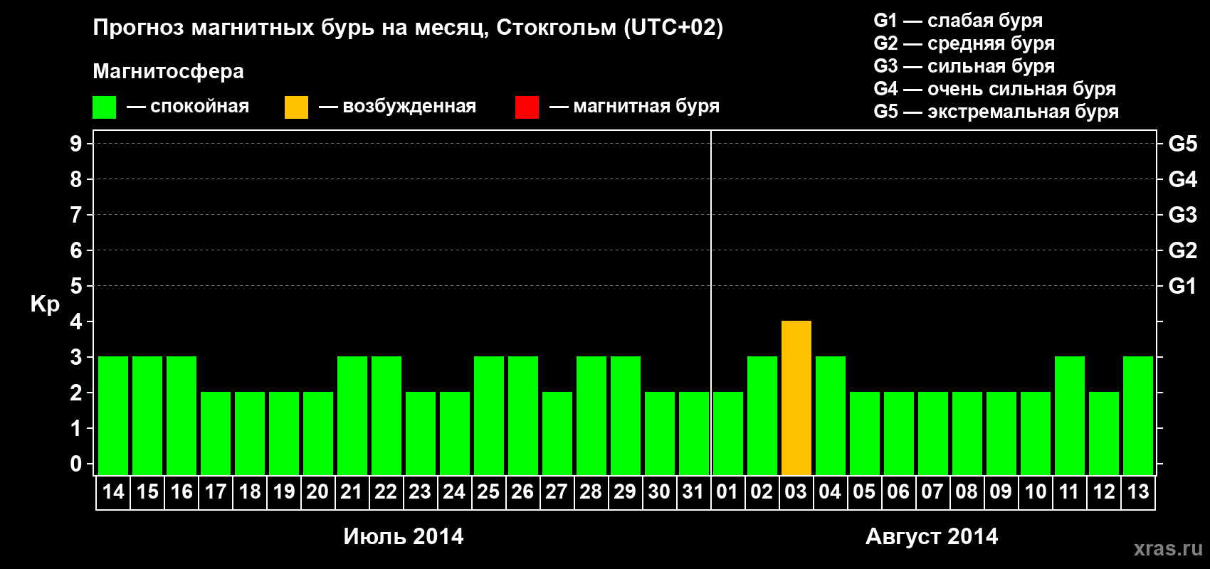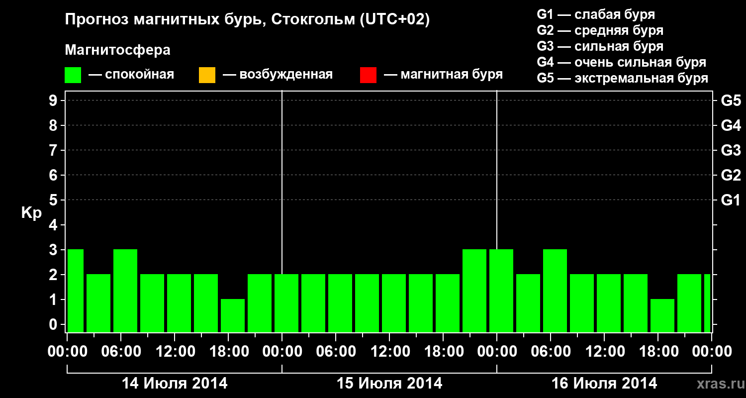 Прогноз магнитных бурь в Стокгольме — 14 июля 2014 года