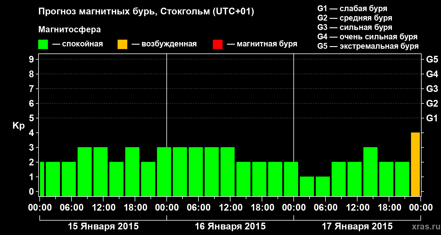 Прогноз магнитных бурь в Стокгольме — 15 января 2015 года