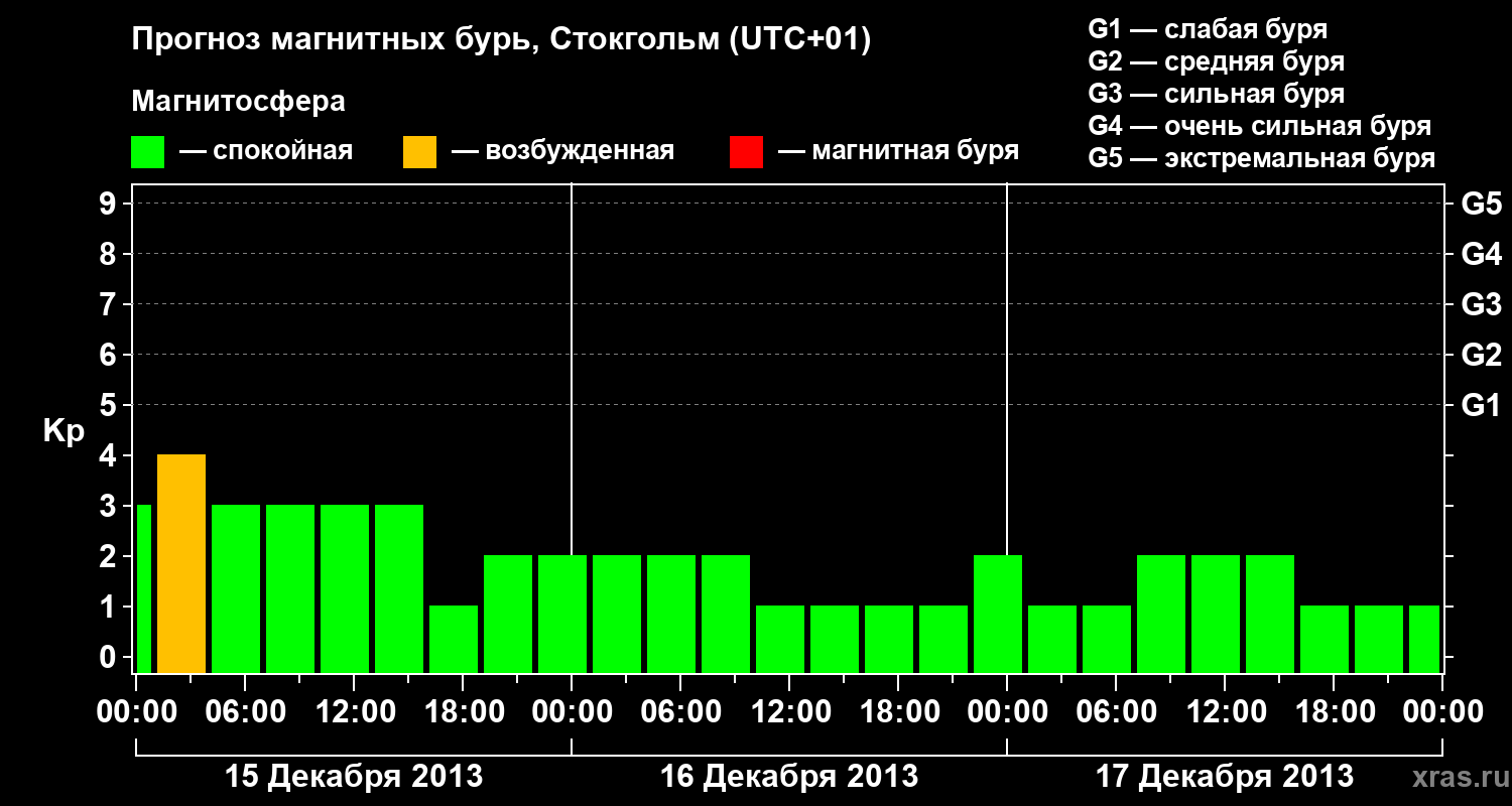 Прогноз магнитных бурь в Стокгольме — 15 декабря 2013 года