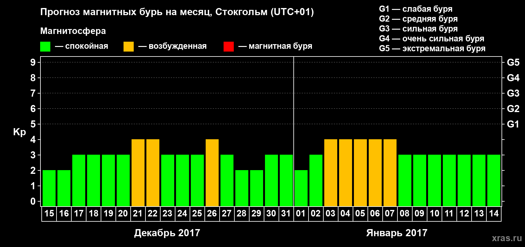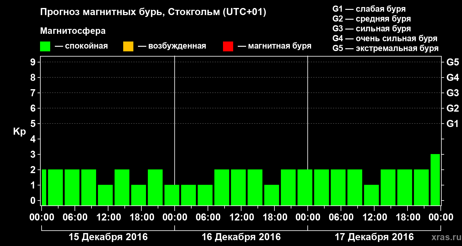 Прогноз магнитных бурь в Стокгольме — 15 декабря 2016 года