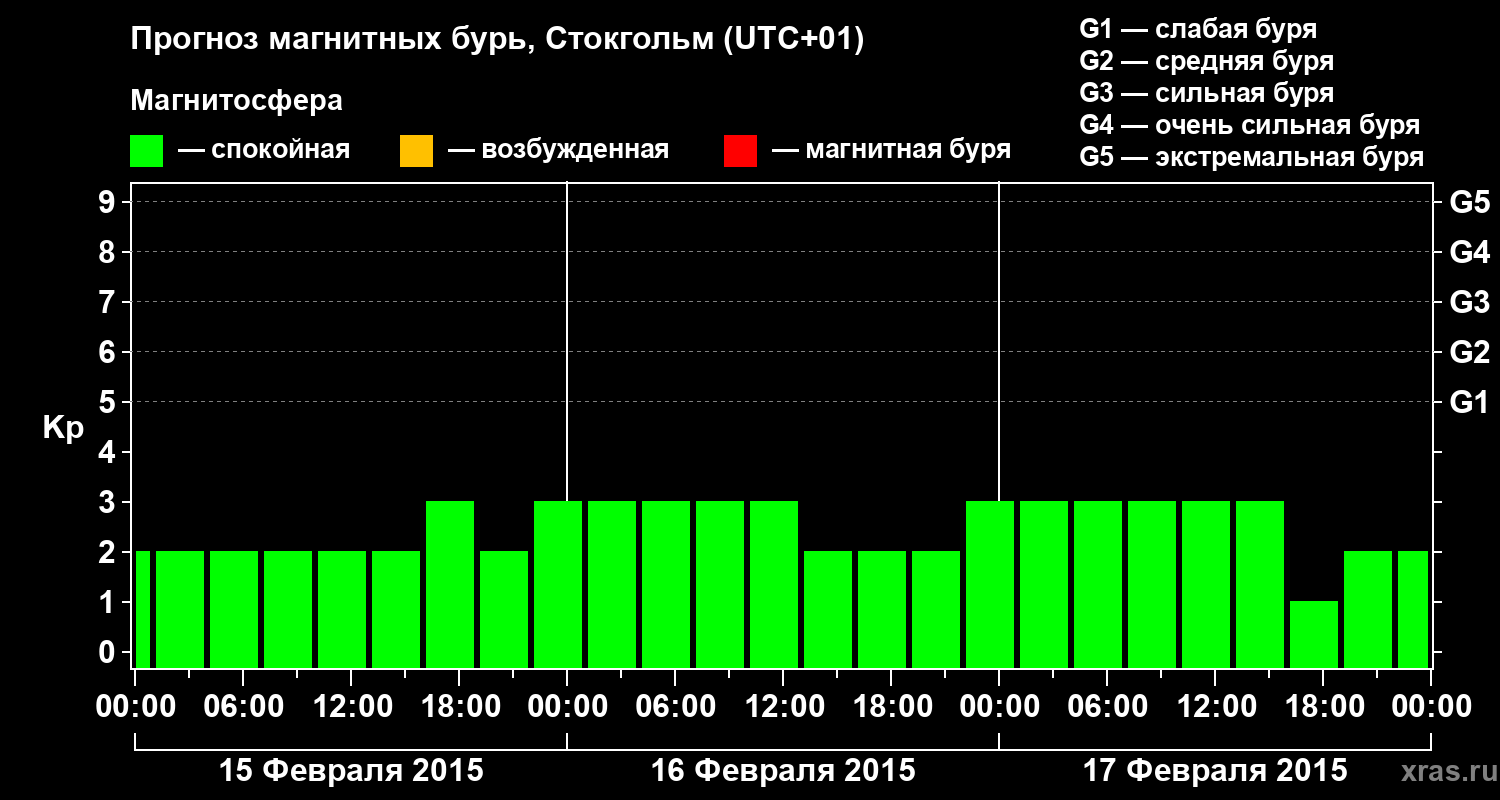 Прогноз магнитных бурь в Стокгольме — 15 февраля 2015 года