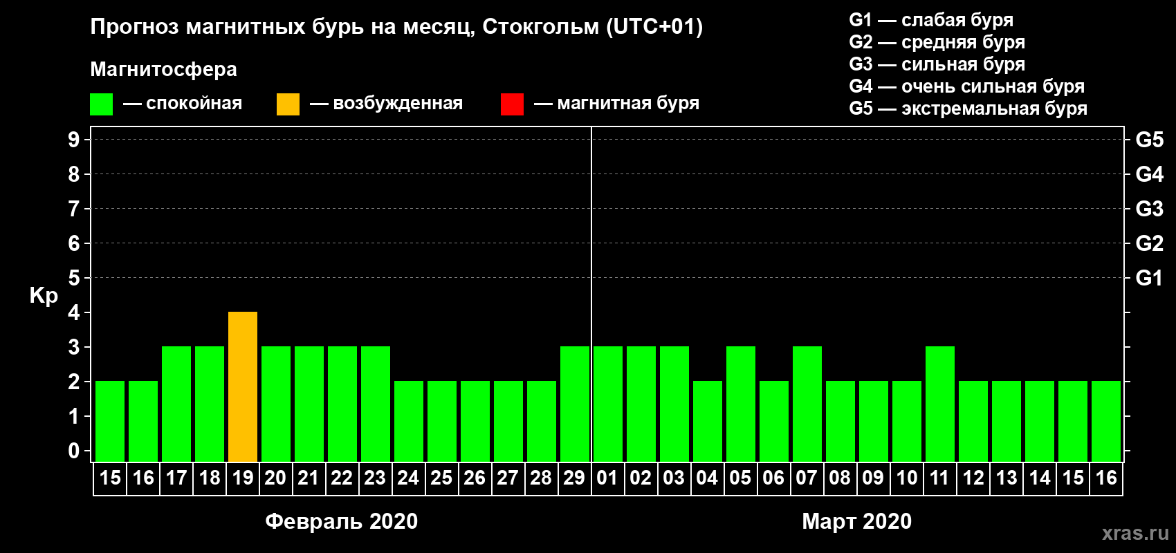 Прогноз магнитных бурь в Стокгольме — 15 февраля 2020 года