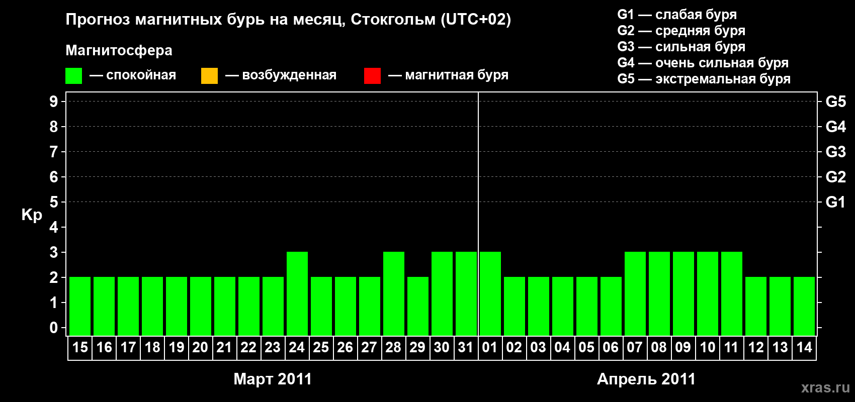 Прогноз магнитных бурь в Стокгольме — 15 марта 2011 года