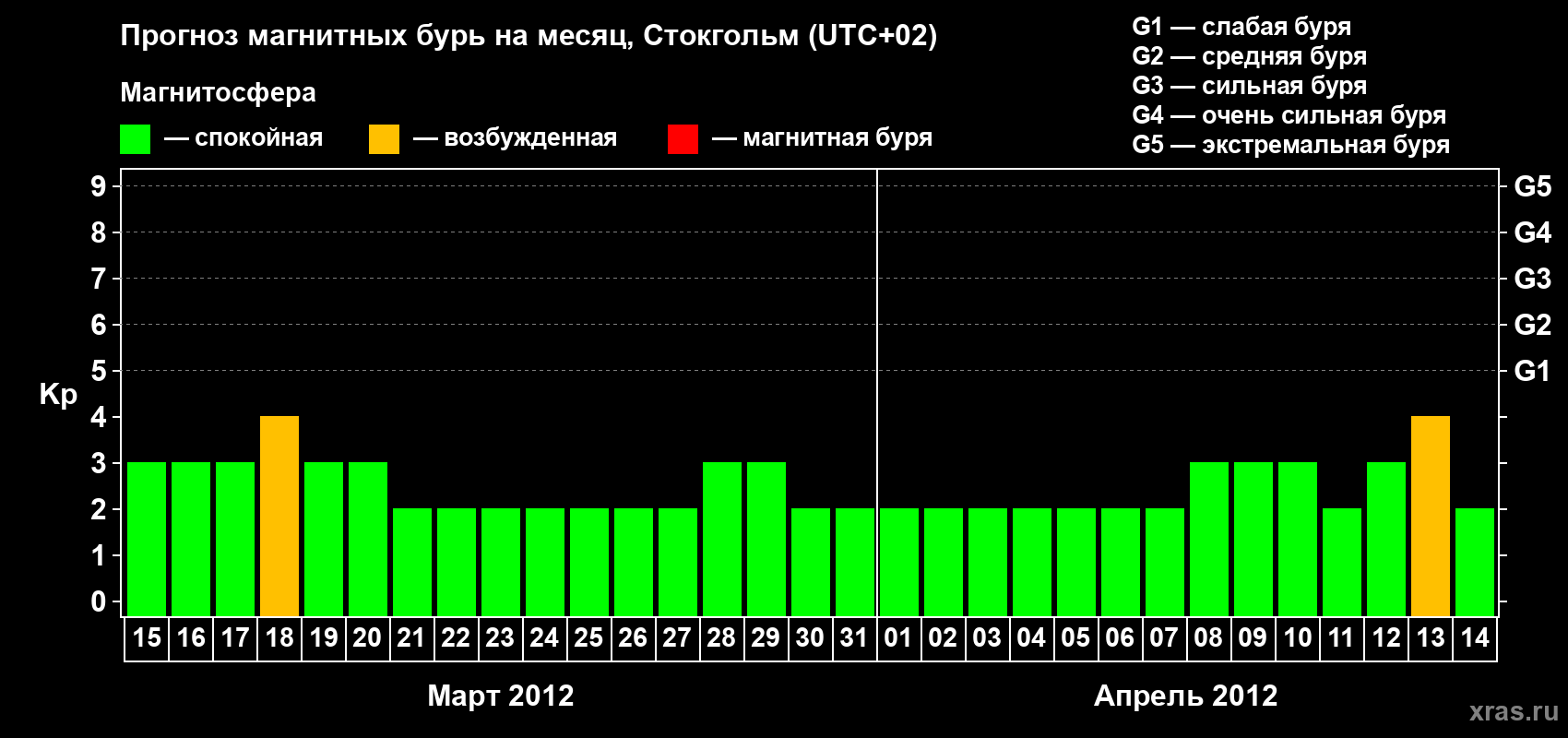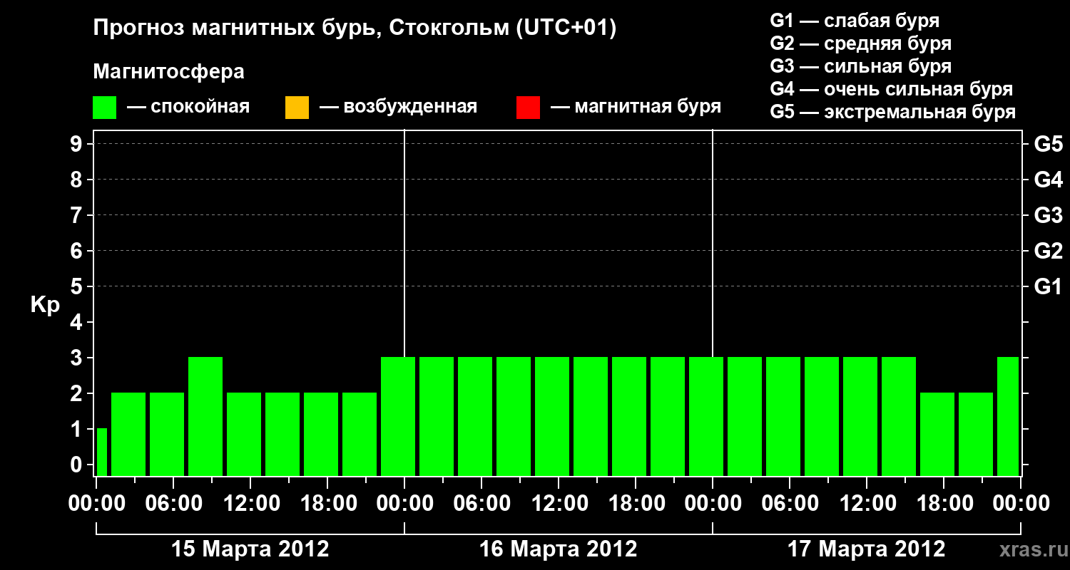 Прогноз магнитных бурь в Стокгольме — 15 марта 2012 года