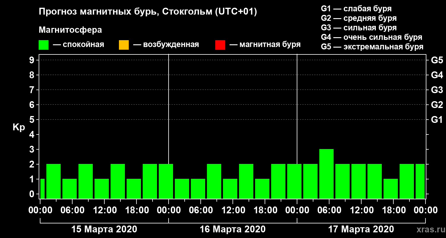 Прогноз магнитных бурь в Стокгольме — 15 марта 2020 года