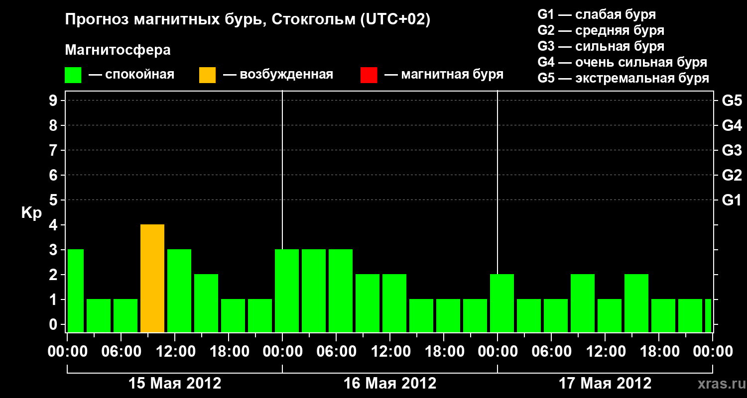 Прогноз магнитных бурь в Стокгольме — 15 мая 2012 года