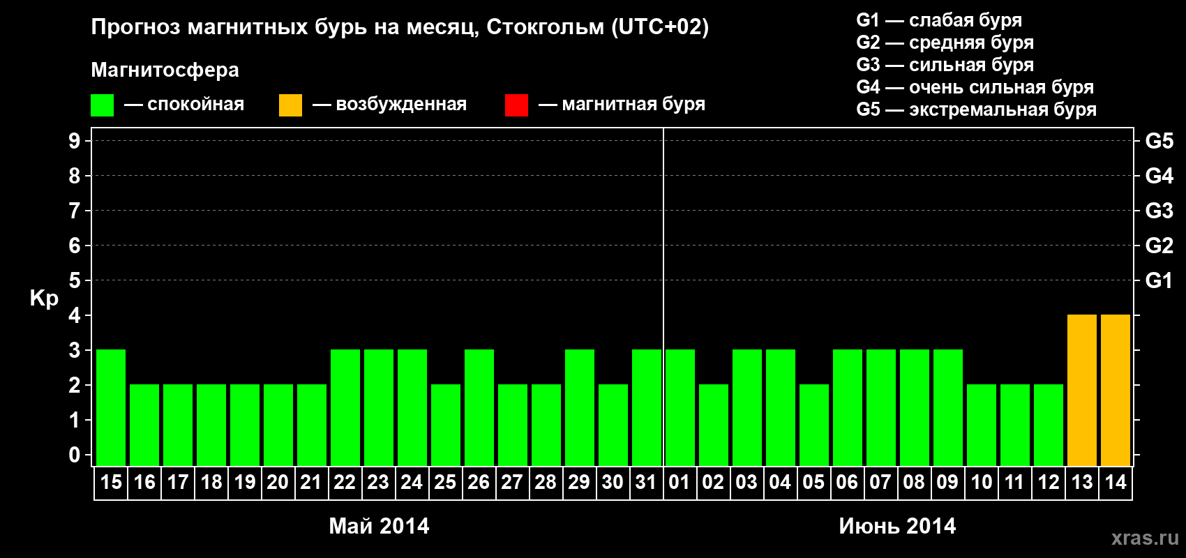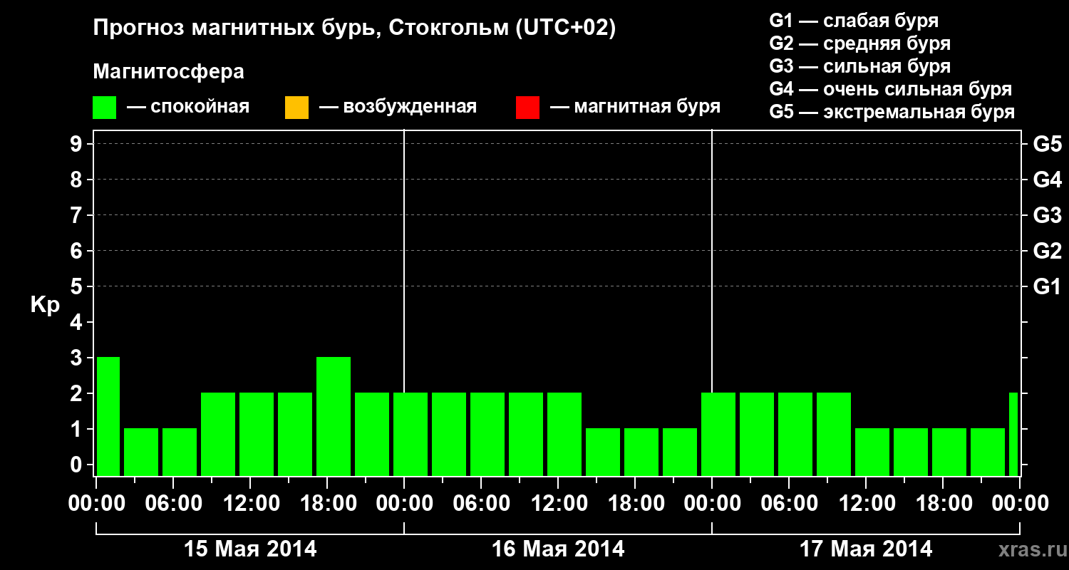 Прогноз магнитных бурь в Стокгольме — 15 мая 2014 года