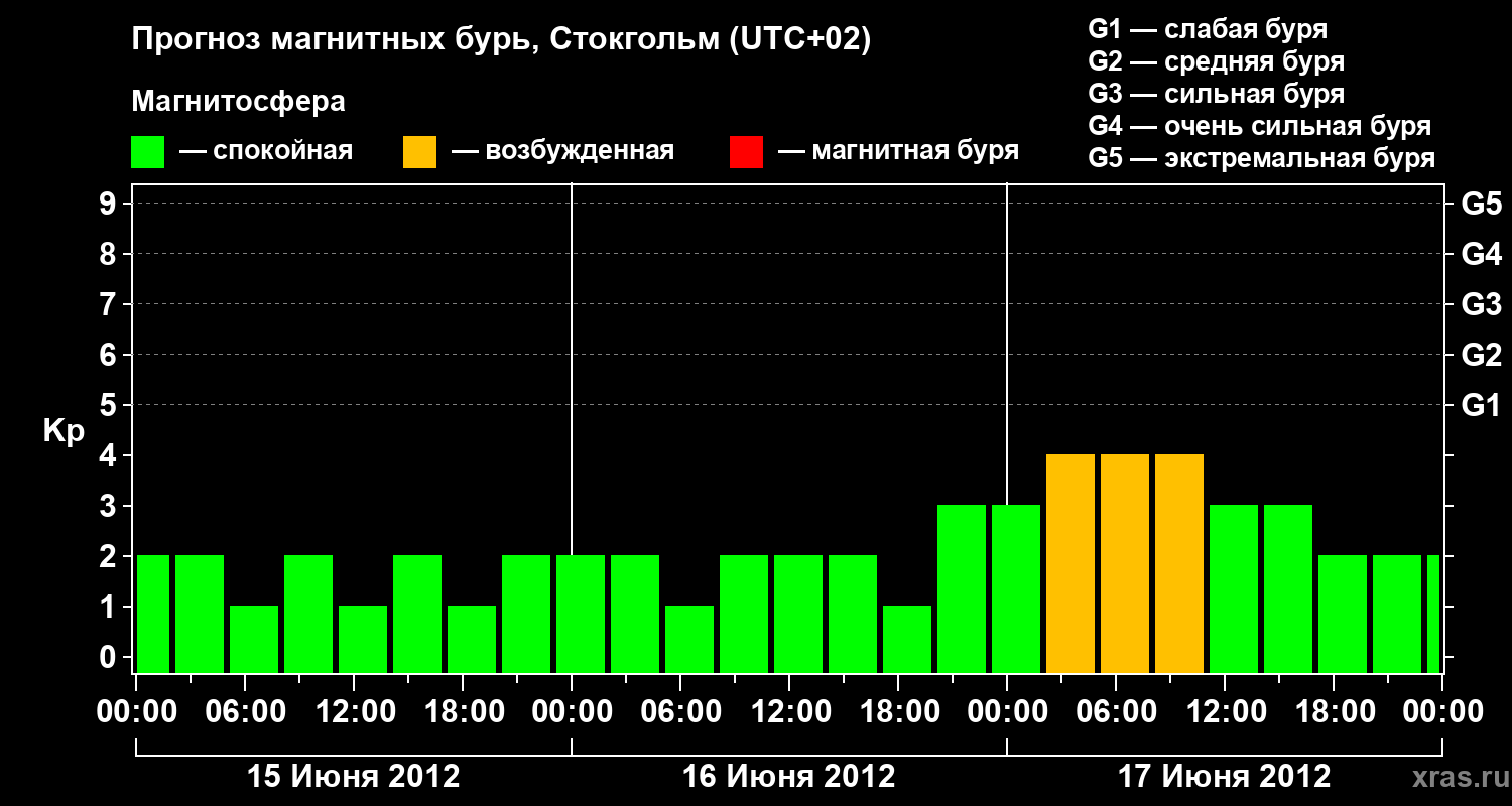 Прогноз магнитных бурь в Стокгольме — 15 июня 2012 года