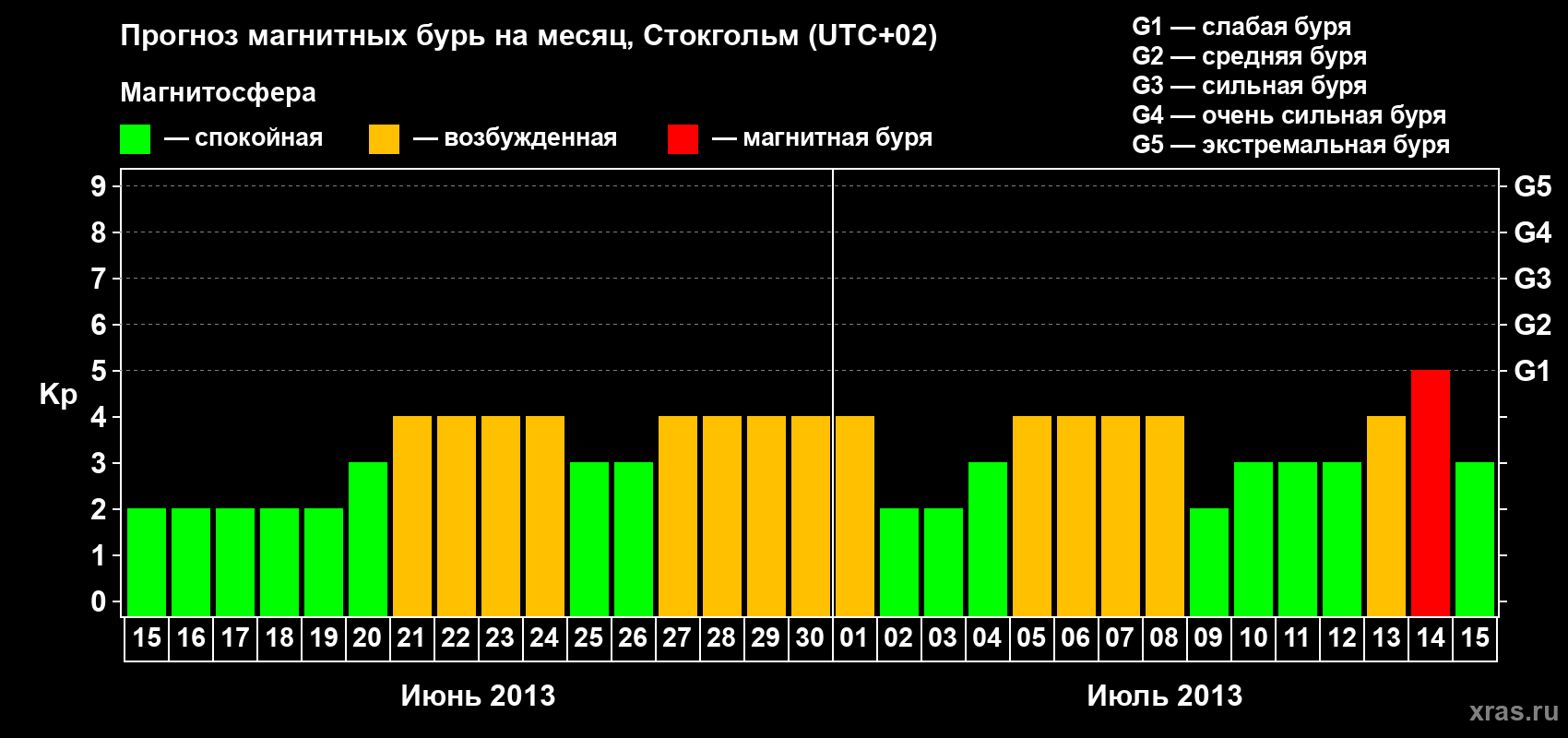 Прогноз магнитных бурь в Стокгольме — 15 июня 2013 года