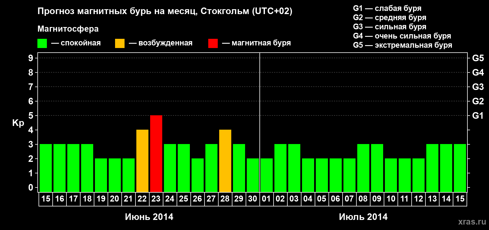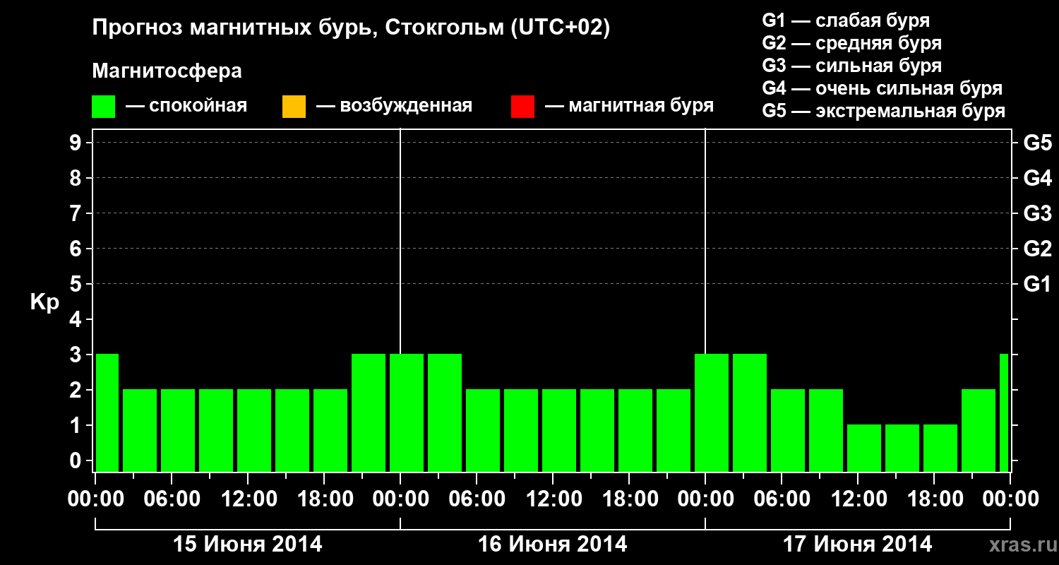 Прогноз магнитных бурь в Стокгольме — 15 июня 2014 года