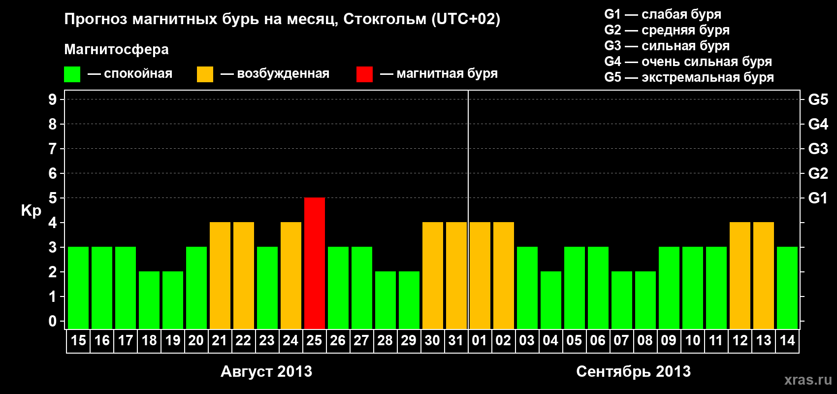 Прогноз магнитных бурь в Стокгольме — 15 августа 2013 года
