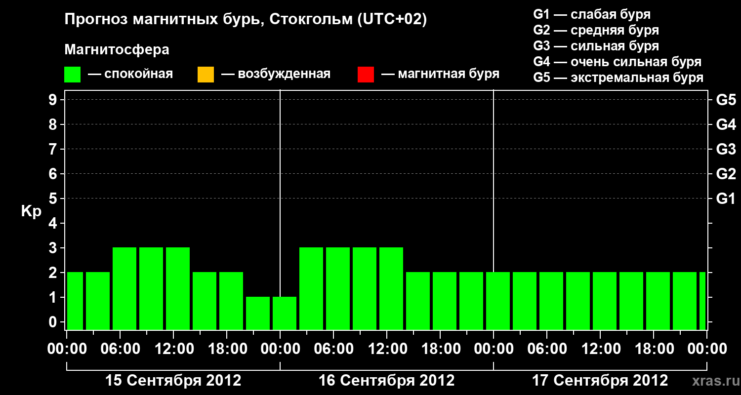 Прогноз магнитных бурь в Стокгольме — 15 сентября 2012 года
