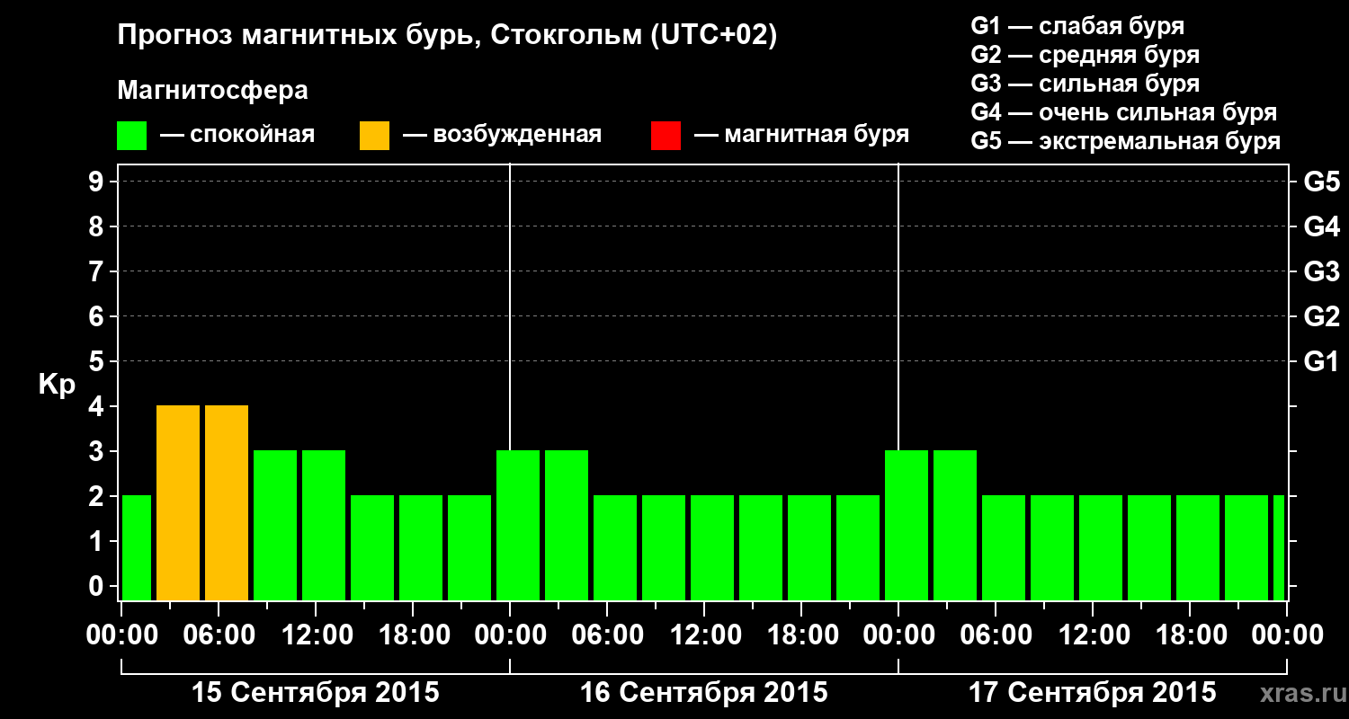 Прогноз магнитных бурь в Стокгольме — 15 сентября 2015 года