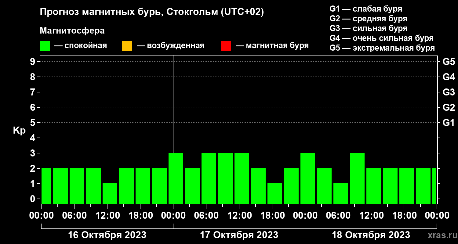 Прогноз магнитных бурь в Стокгольме — 16 октября 2023 года