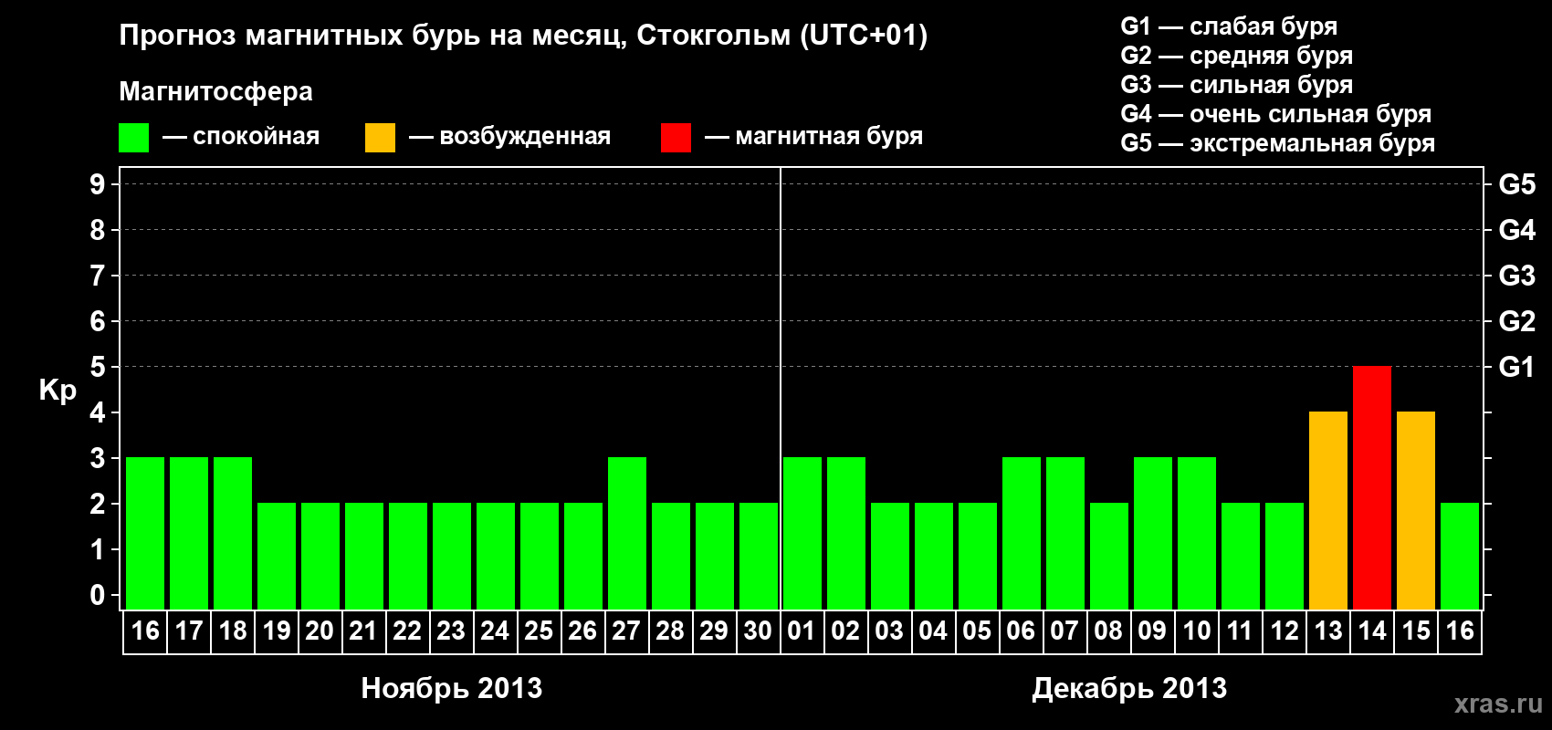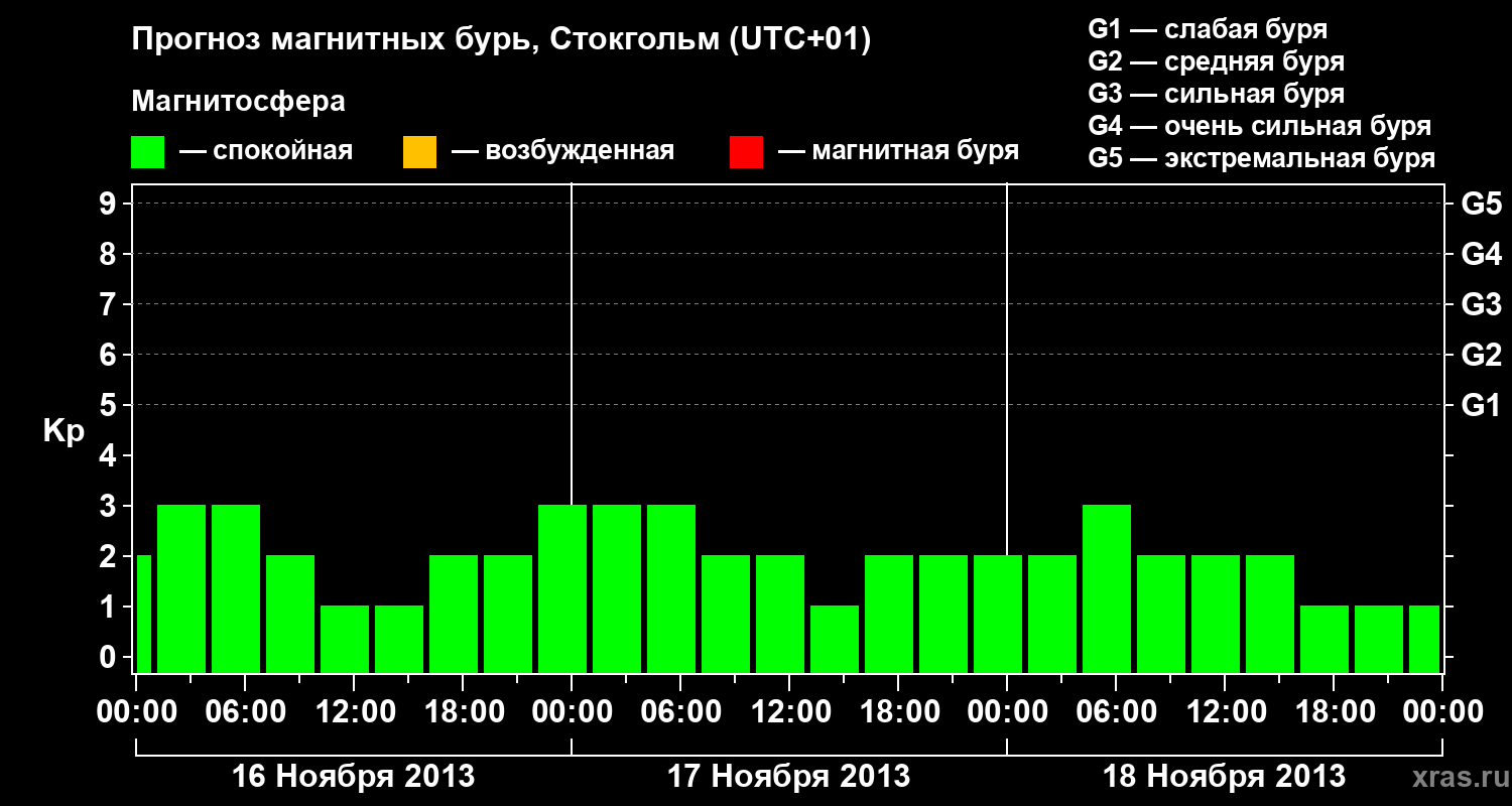 Прогноз магнитных бурь в Стокгольме — 16 ноября 2013 года