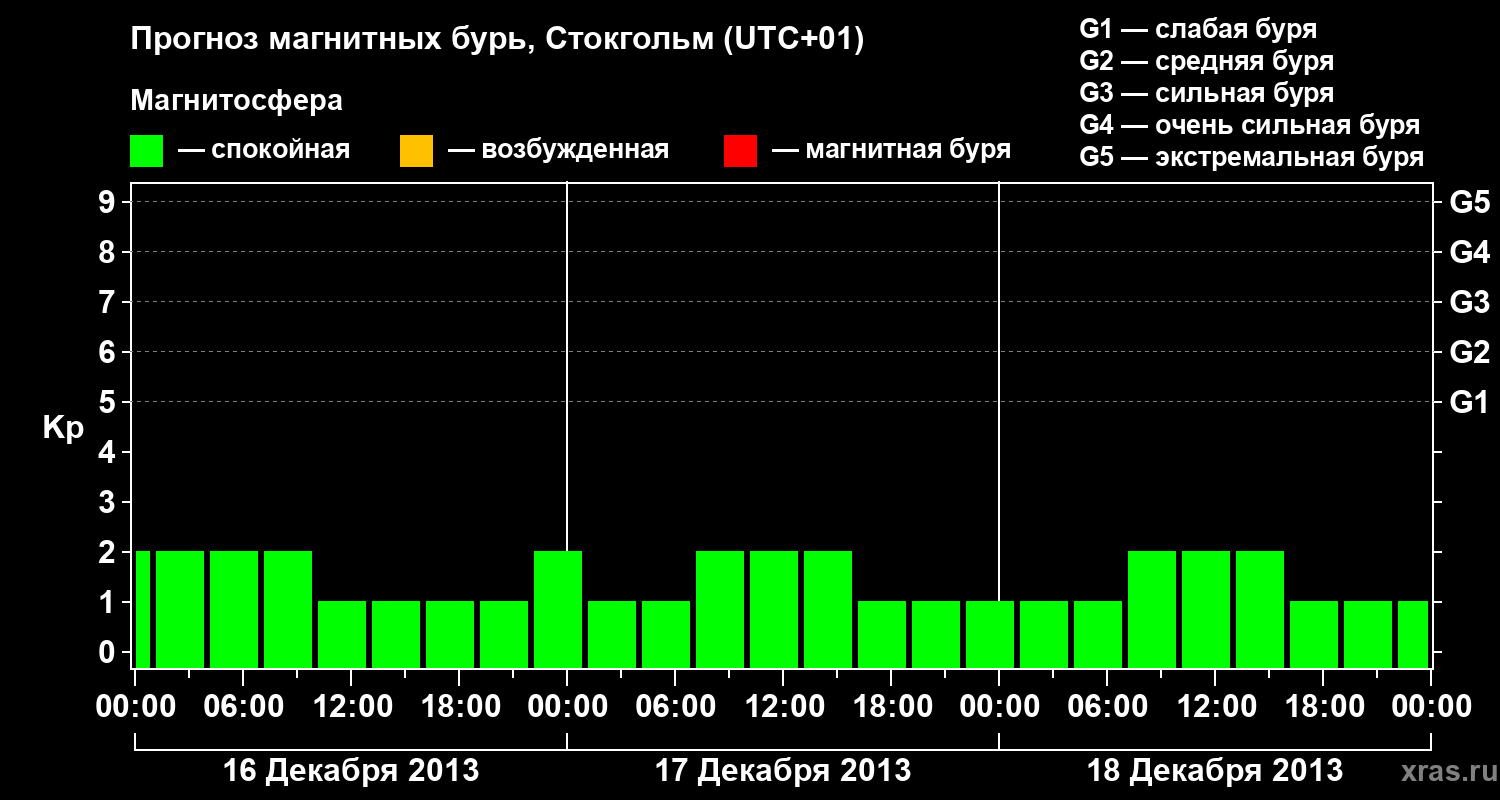 Прогноз магнитных бурь в Стокгольме — 16 декабря 2013 года