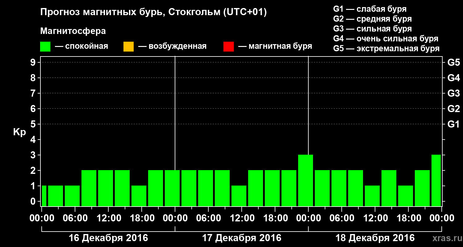 Прогноз магнитных бурь в Стокгольме — 16 декабря 2016 года