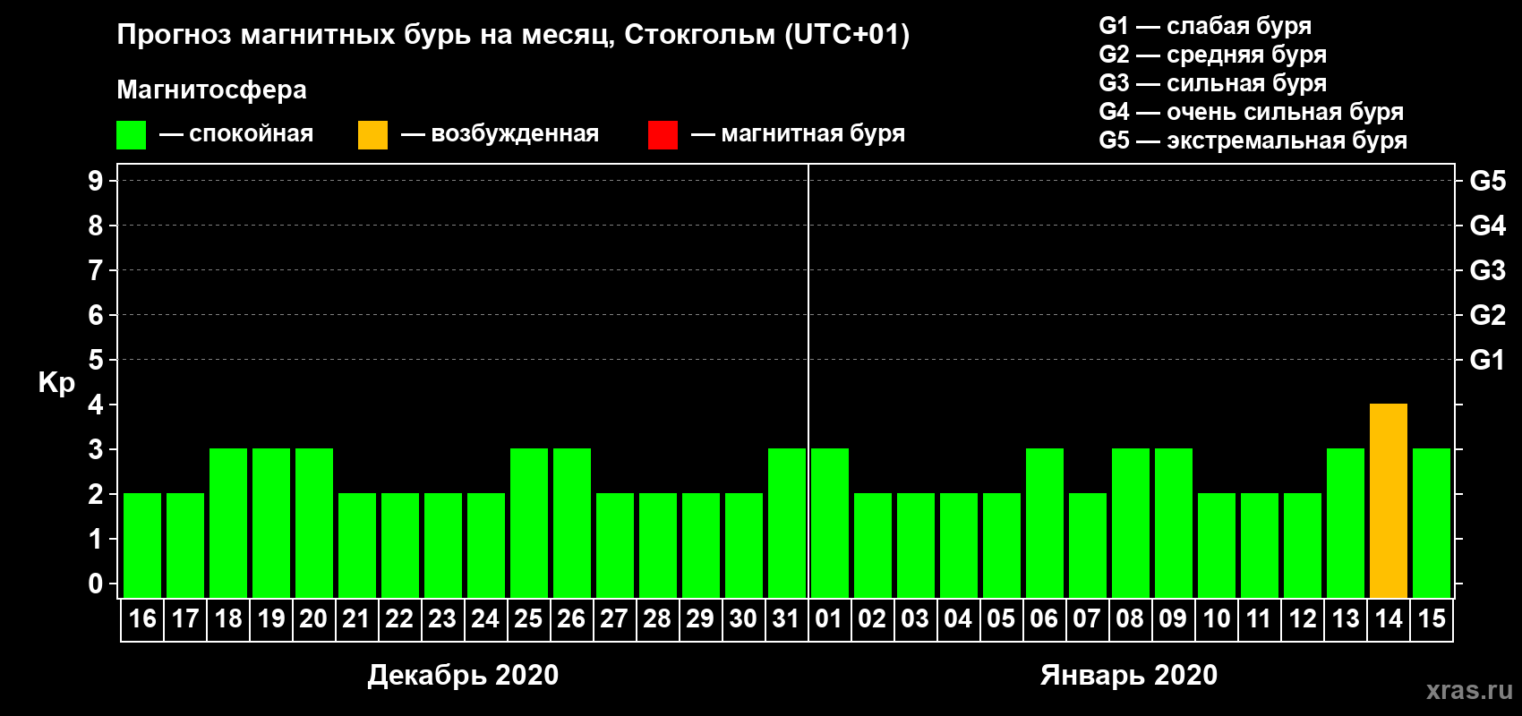 Прогноз магнитных бурь в Стокгольме — 16 декабря 2019 года