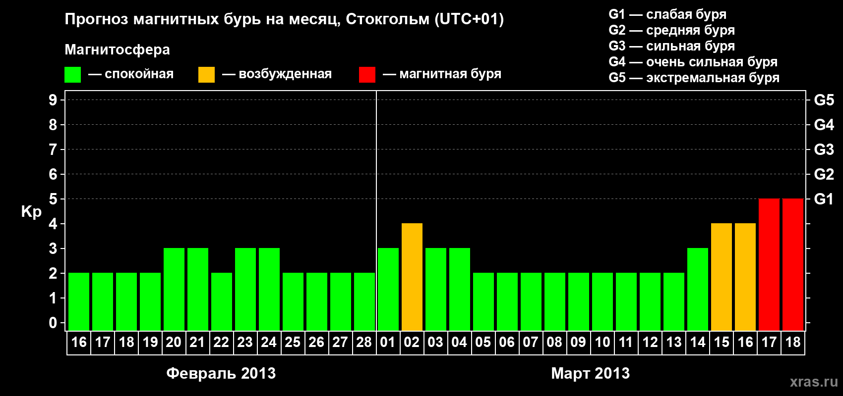 Прогноз магнитных бурь в Стокгольме — 16 февраля 2013 года