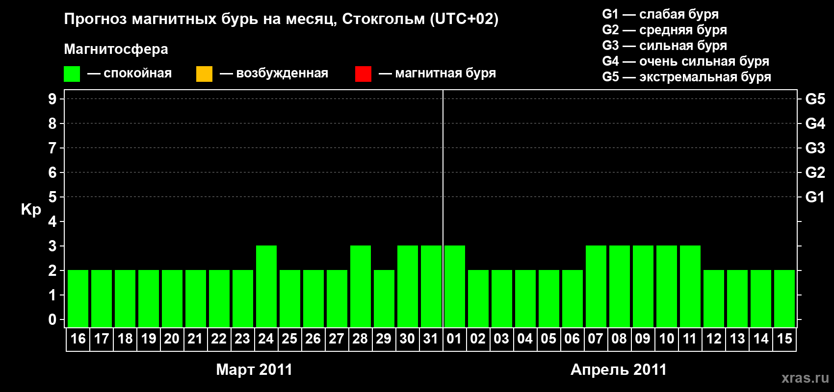 Прогноз магнитных бурь в Стокгольме — 16 марта 2011 года