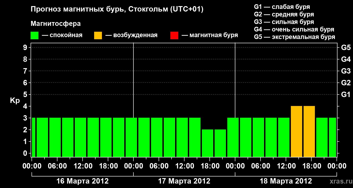 Прогноз магнитных бурь в Стокгольме — 16 марта 2012 года