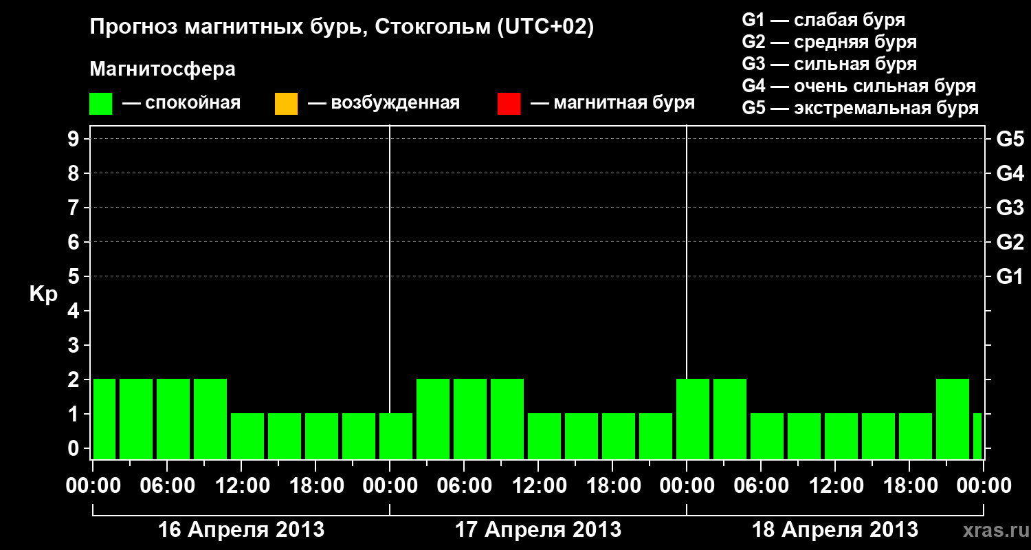 Прогноз магнитных бурь в Стокгольме — 16 апреля 2013 года