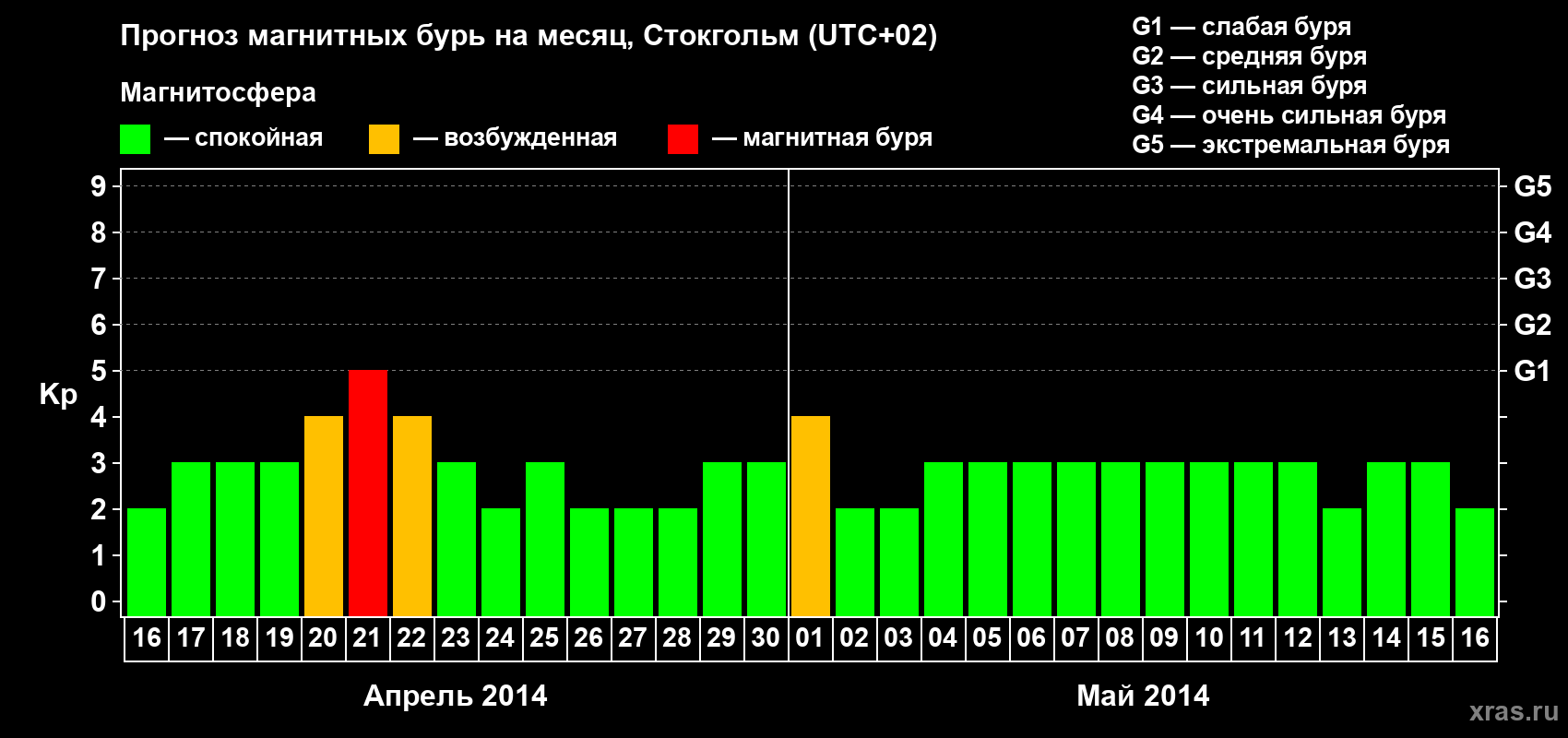 Прогноз магнитных бурь в Стокгольме — 16 апреля 2014 года
