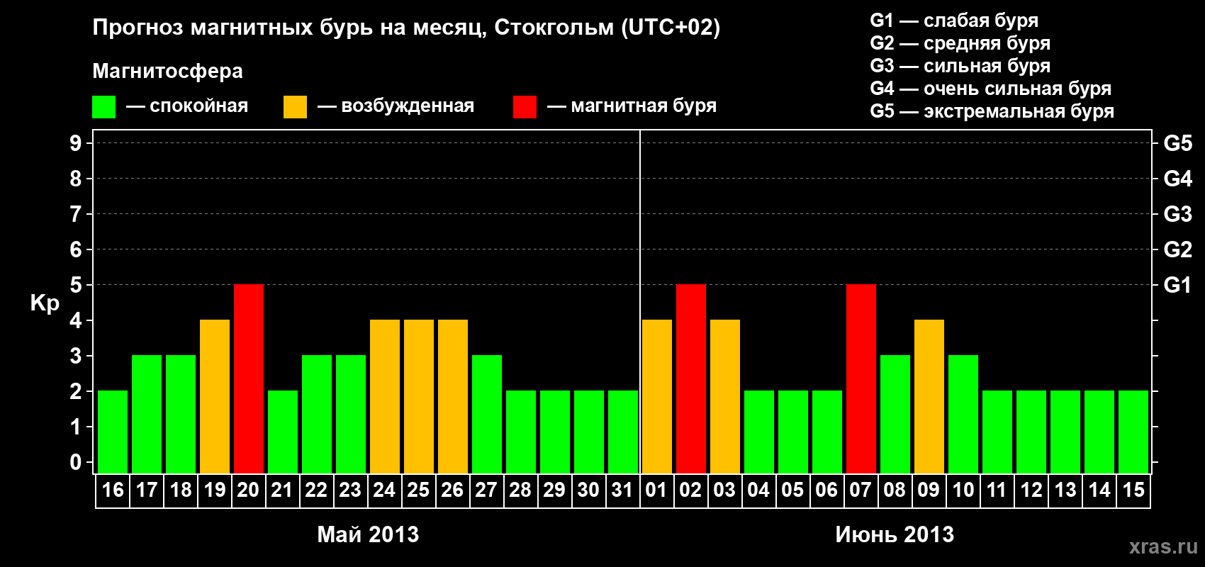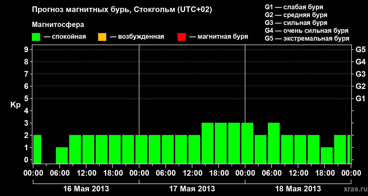 Прогноз магнитных бурь в Стокгольме — 16 мая 2013 года