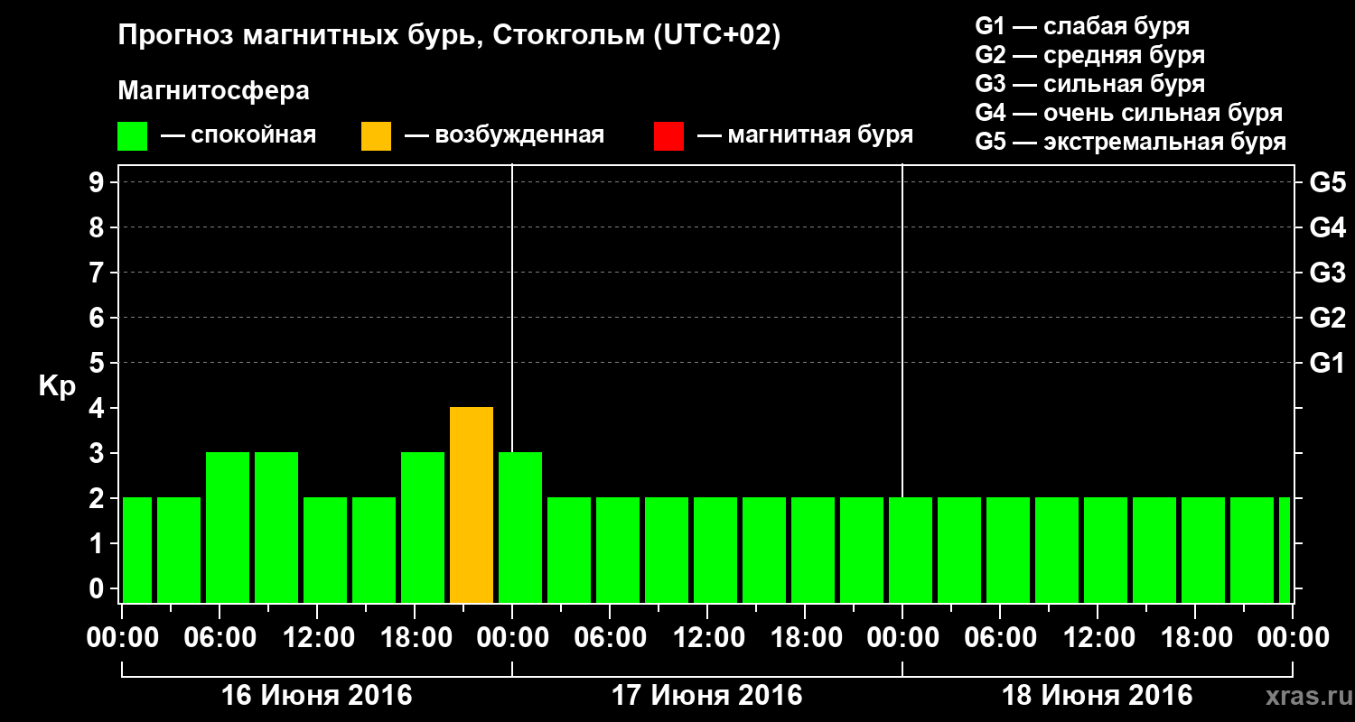 Прогноз магнитных бурь в Стокгольме — 16 июня 2016 года