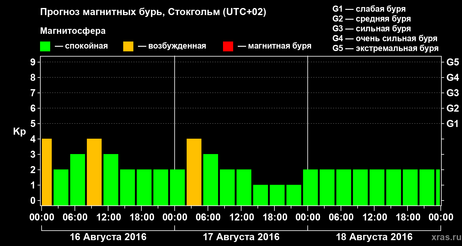 Прогноз магнитных бурь в Стокгольме — 16 августа 2016 года
