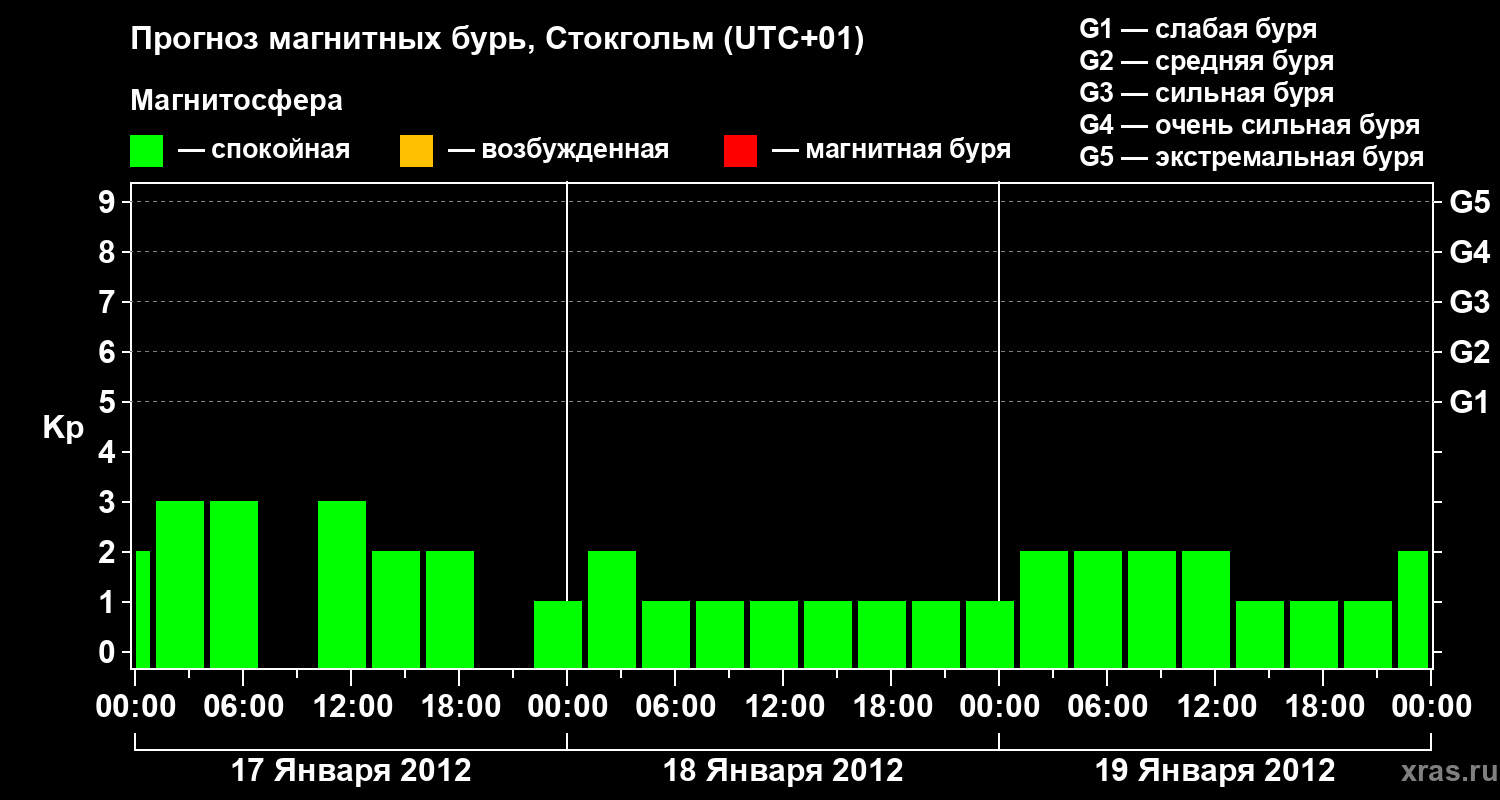 Прогноз магнитных бурь в Стокгольме — 17 января 2012 года