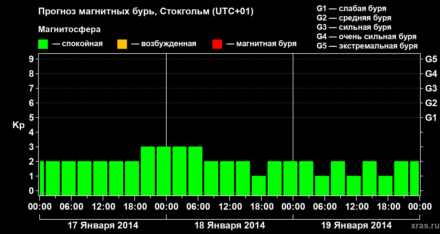 Прогноз магнитных бурь в Стокгольме — 17 января 2014 года