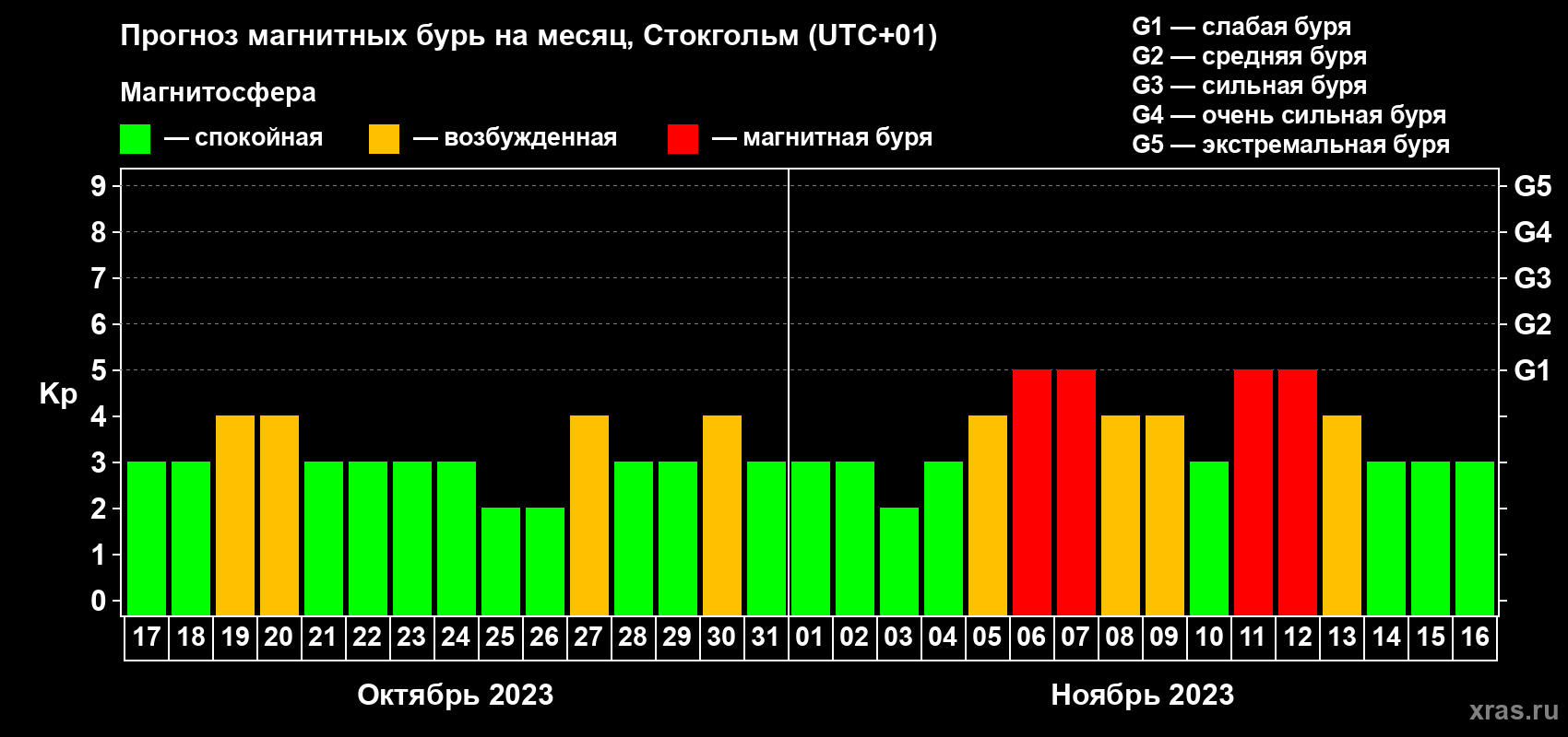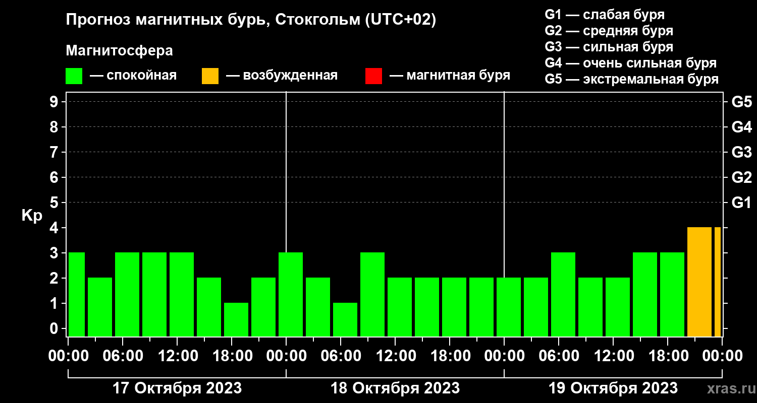 Прогноз магнитных бурь в Стокгольме — 17 октября 2023 года