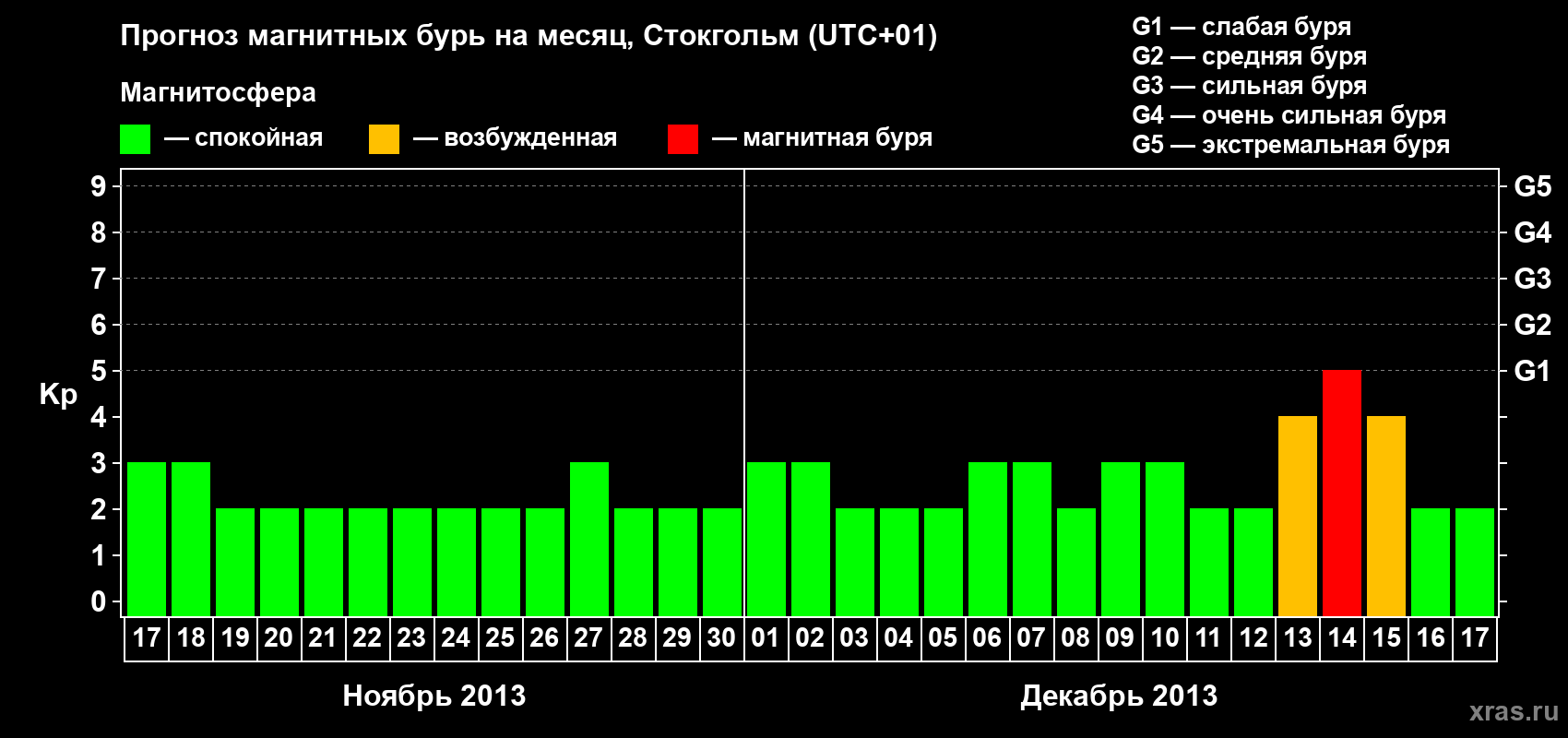 Прогноз магнитных бурь в Стокгольме — 17 ноября 2013 года