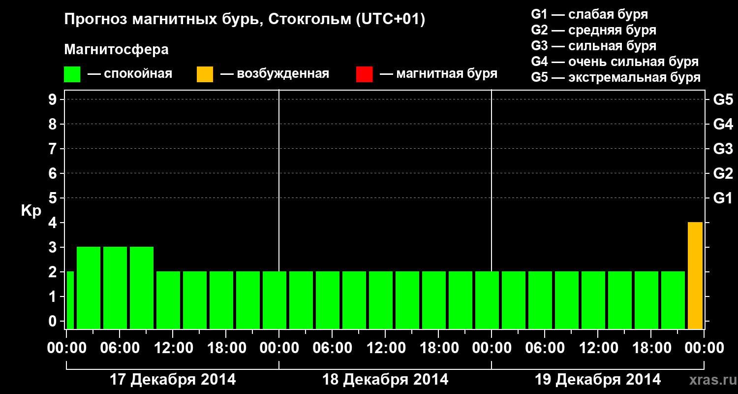 Прогноз магнитных бурь в Стокгольме — 17 декабря 2014 года